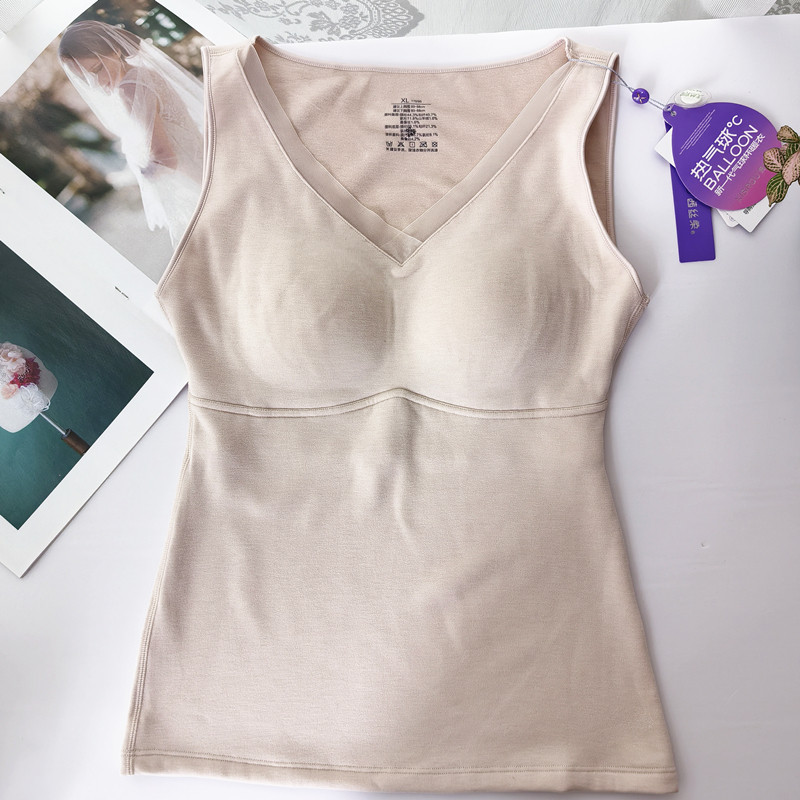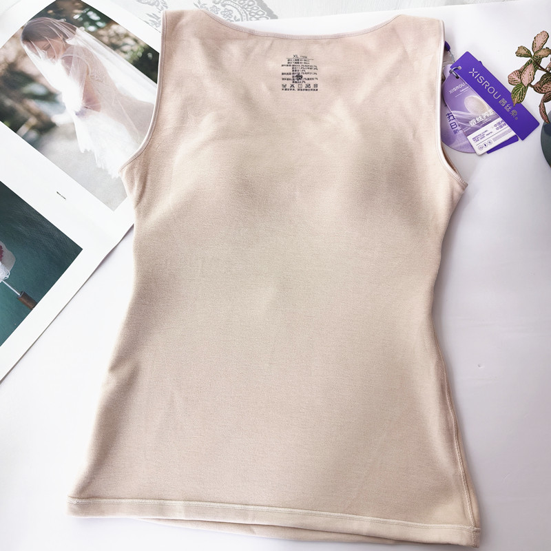 秋冬新款保暖背心女无钢圈免穿文胸带胸垫轻暖蚕丝羊绒磨毛打底衣