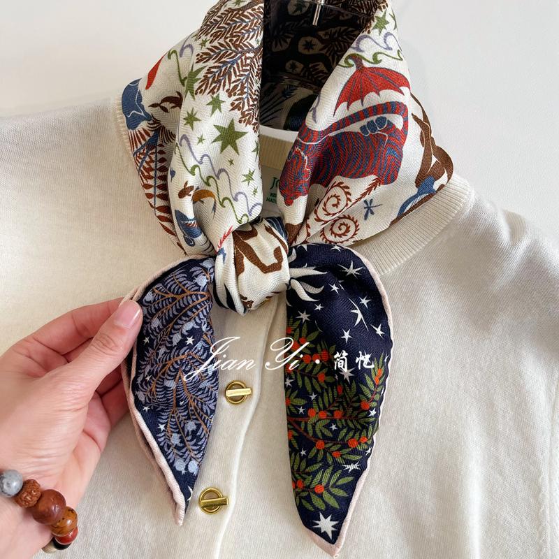 【俄耳甫斯-蓝色】气质篙级真丝羊毛65方巾双面秋冬保暖披肩围巾