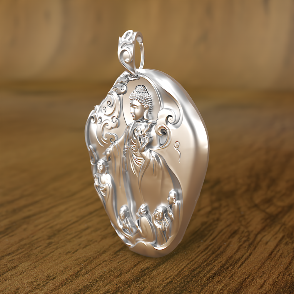 实心99足银阿弥陀佛本命佛吊坠生肖狗猪足银守护神项链男女款银牌