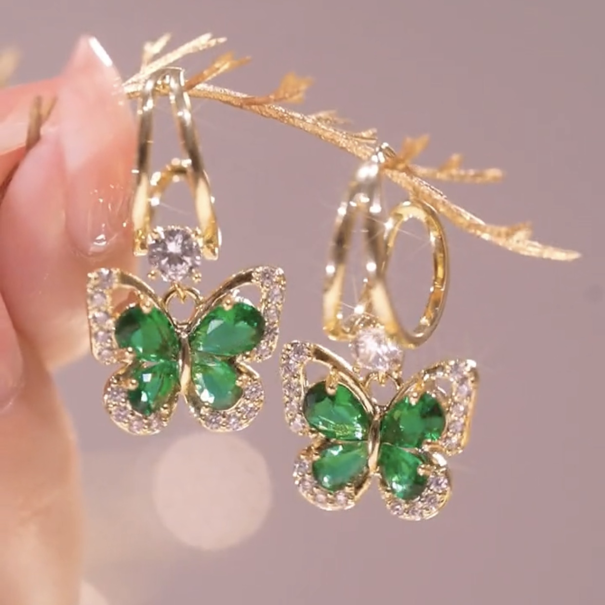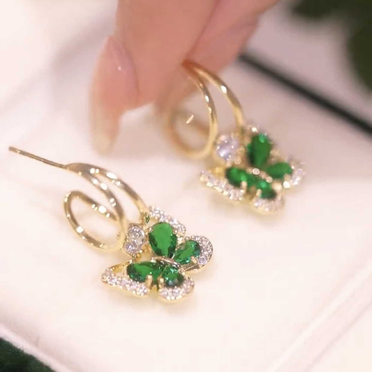 韩版轻奢绿色蝴蝶耳钉女2022新款潮超仙耳环韩国气质简约银针耳饰