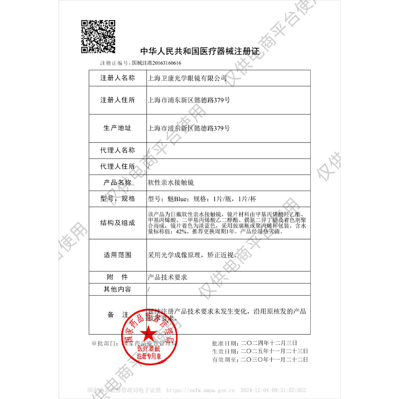 卫康隐形近视眼镜年抛盒2片装魅blue金装高度数薄旗舰店官网正品
