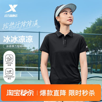 特步冰丝POLO衫女士2025年夏季新款训练半袖短袖翻领T恤运动上衣