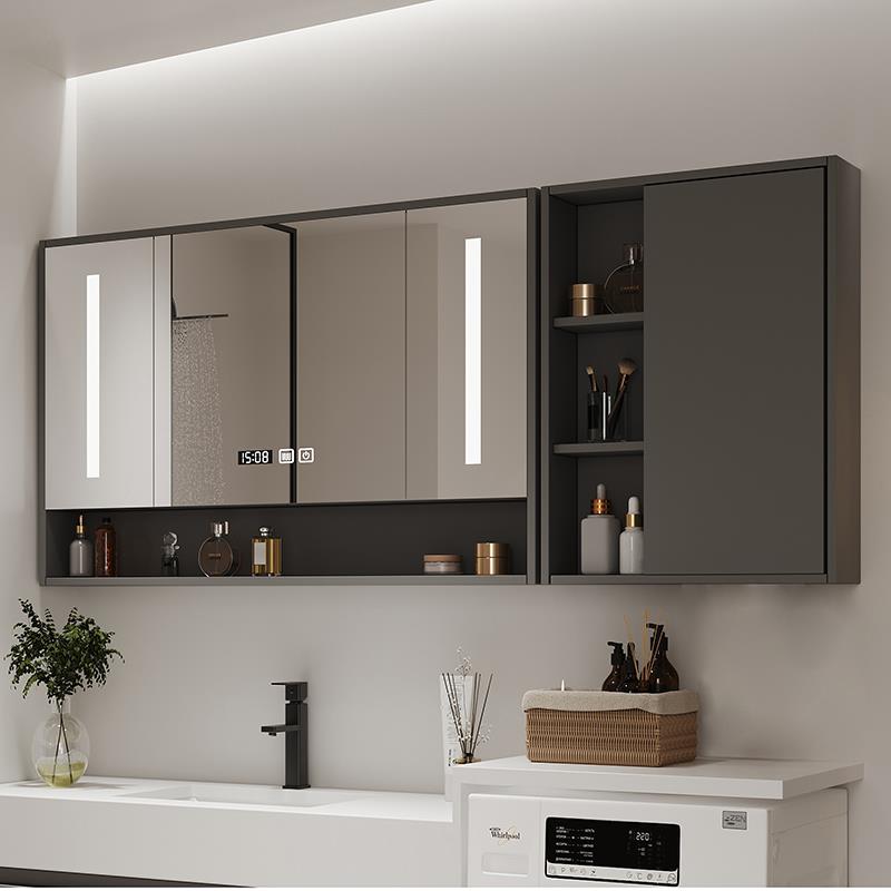 卫生间智能浴室镜柜单独挂墙式带边柜马桶柜实木阳台柜镜子置物架
