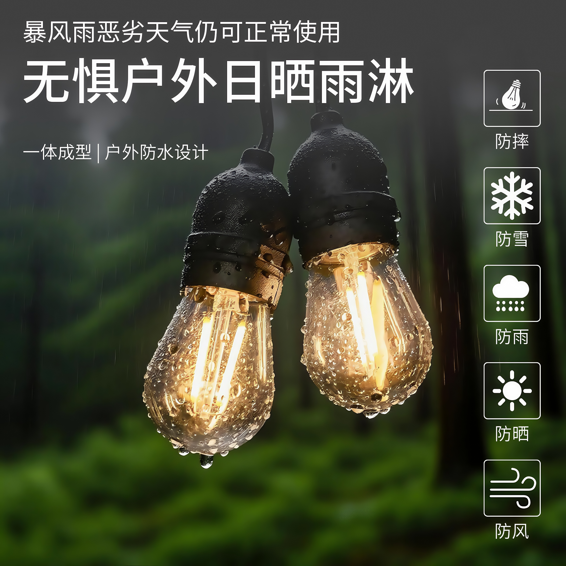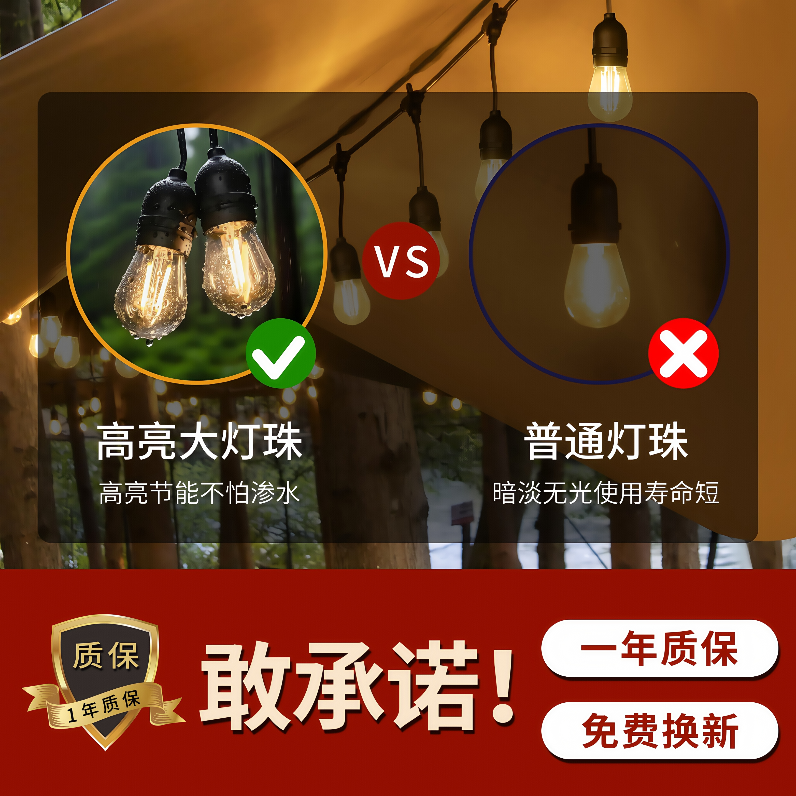 户外高亮防水灯泡庭院花园节日装饰彩灯太阳能灯串帐篷露营氛围灯