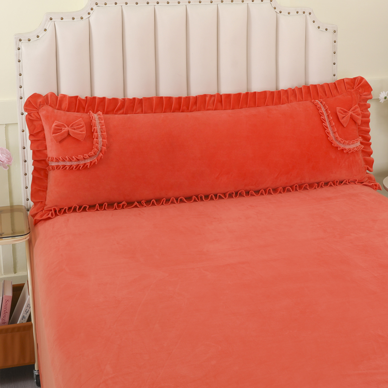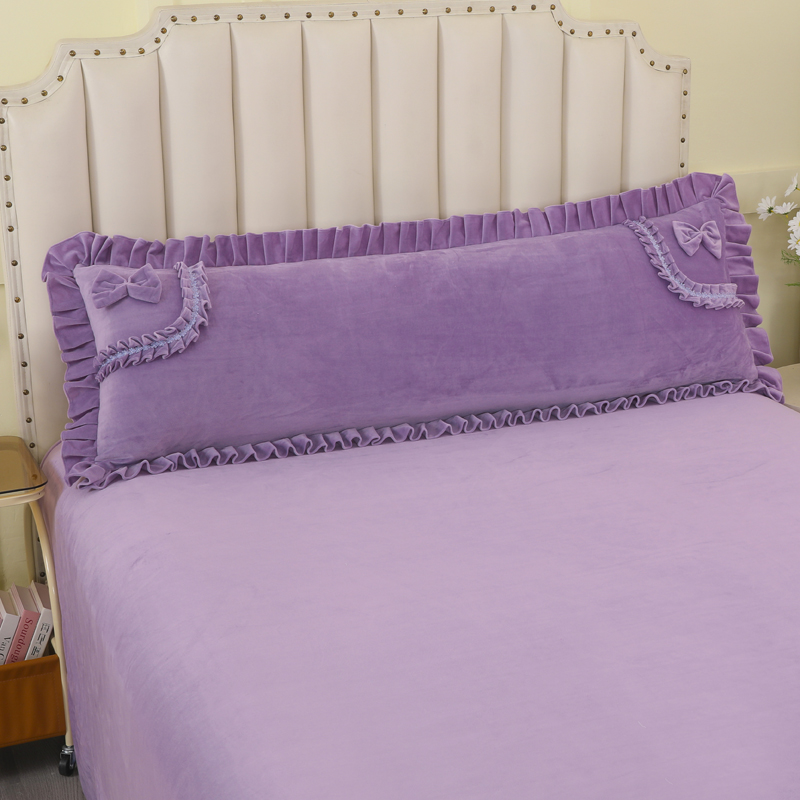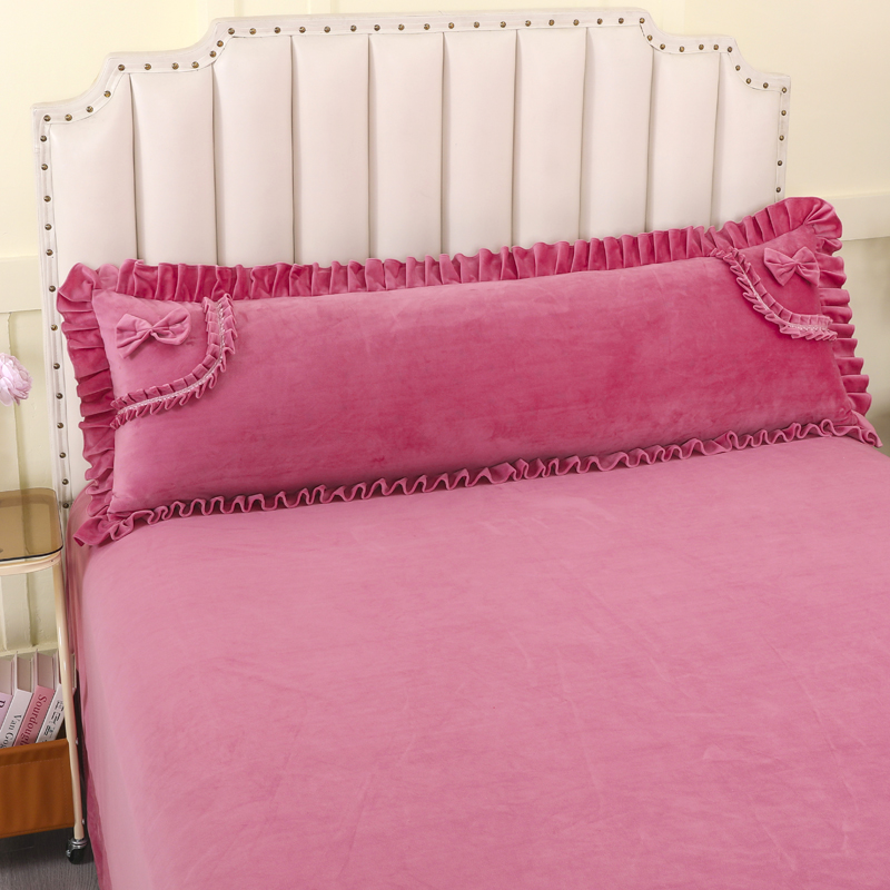 冬宝宝绒双人枕套花边1.2/1.5/1.8米加厚加绒长枕头套带拉链含芯