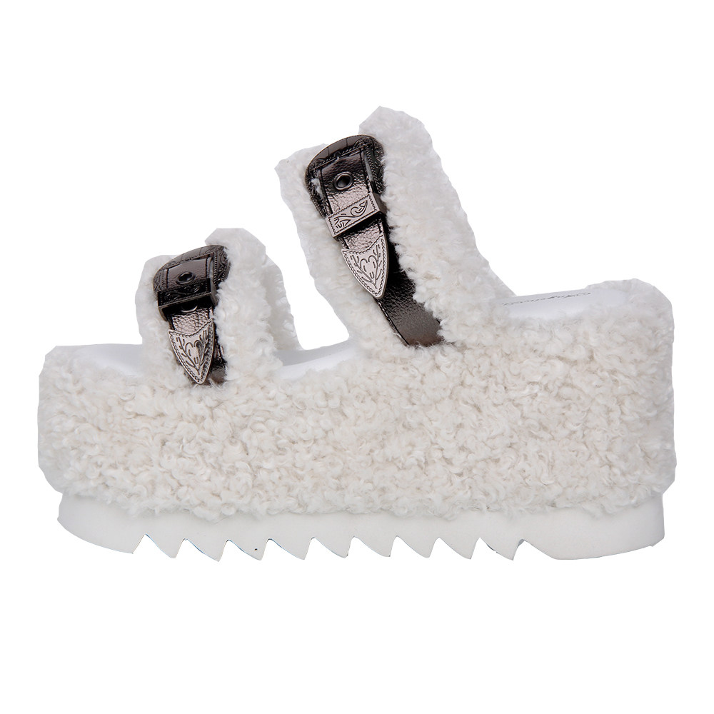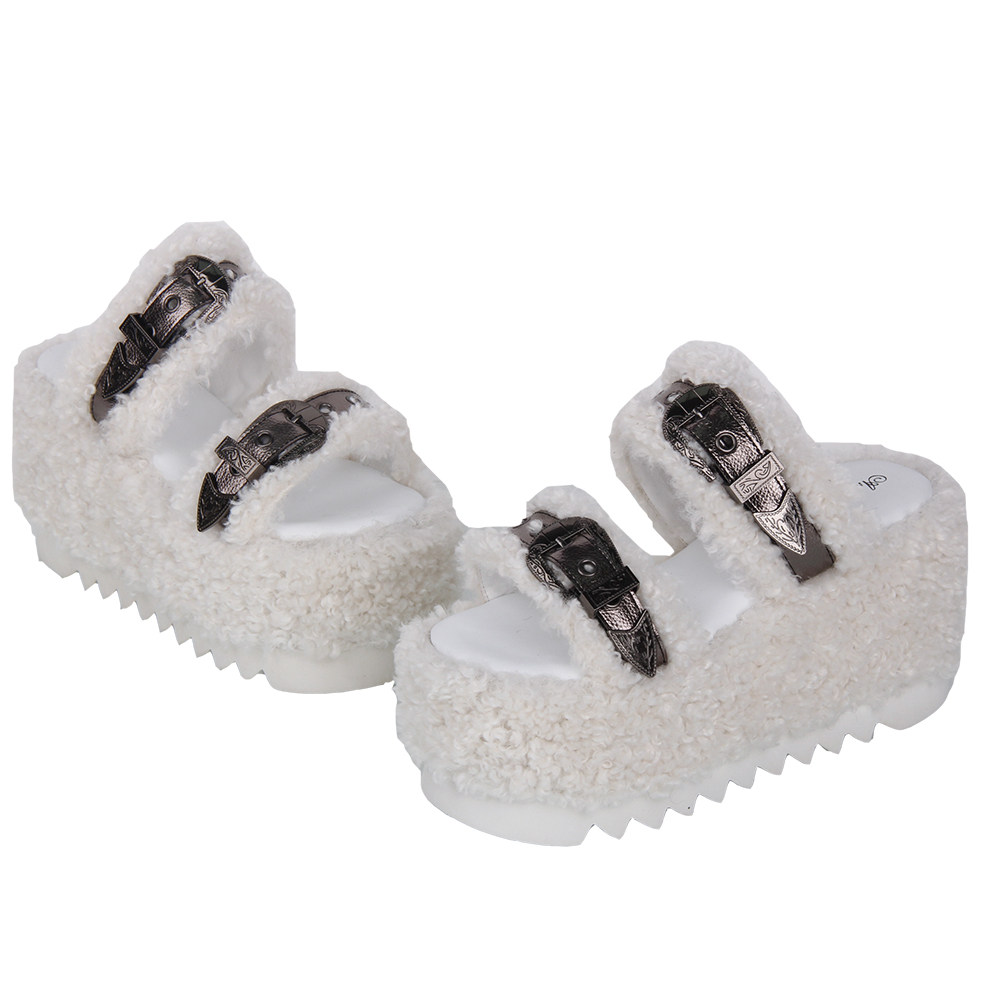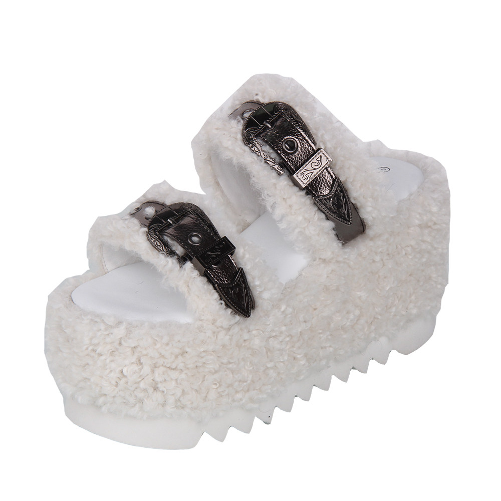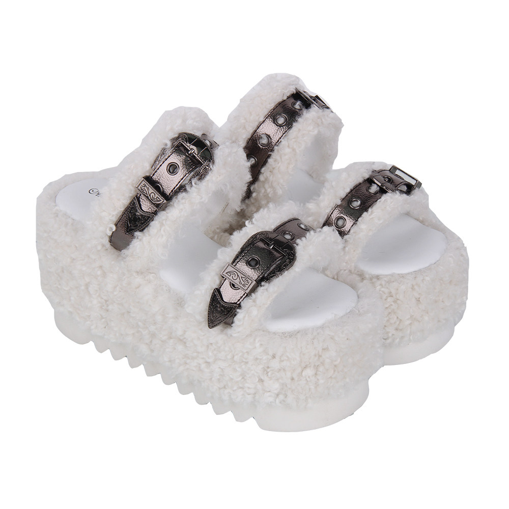 2025春秋新品圆头Lolita鞋装饰松糕底毛毛拖鞋L232