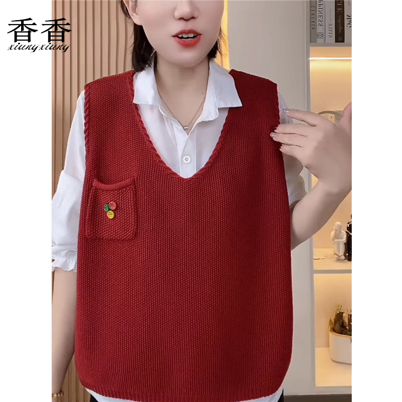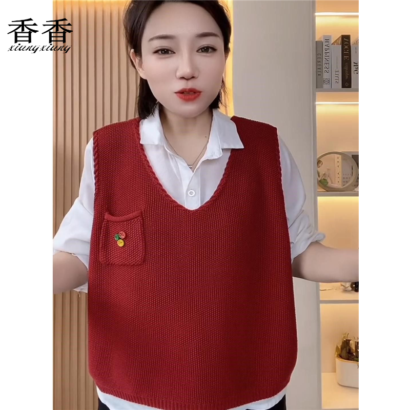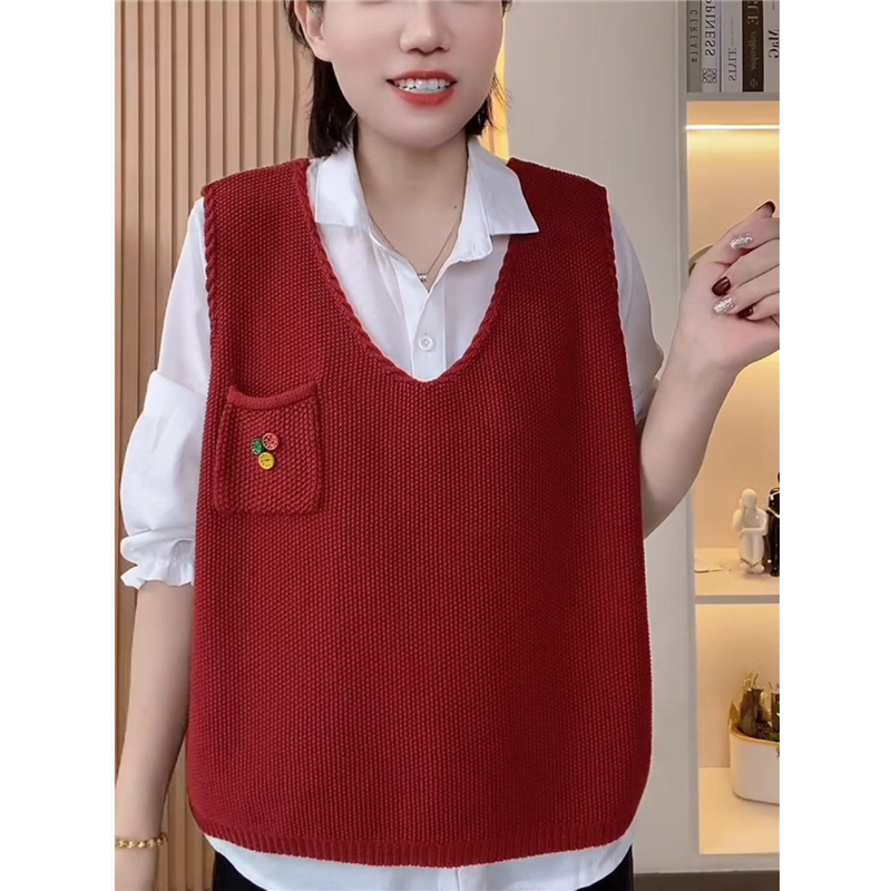2025春季新款针织毛衣马甲背心女宽松百搭叠穿无袖坎肩短款马夹潮