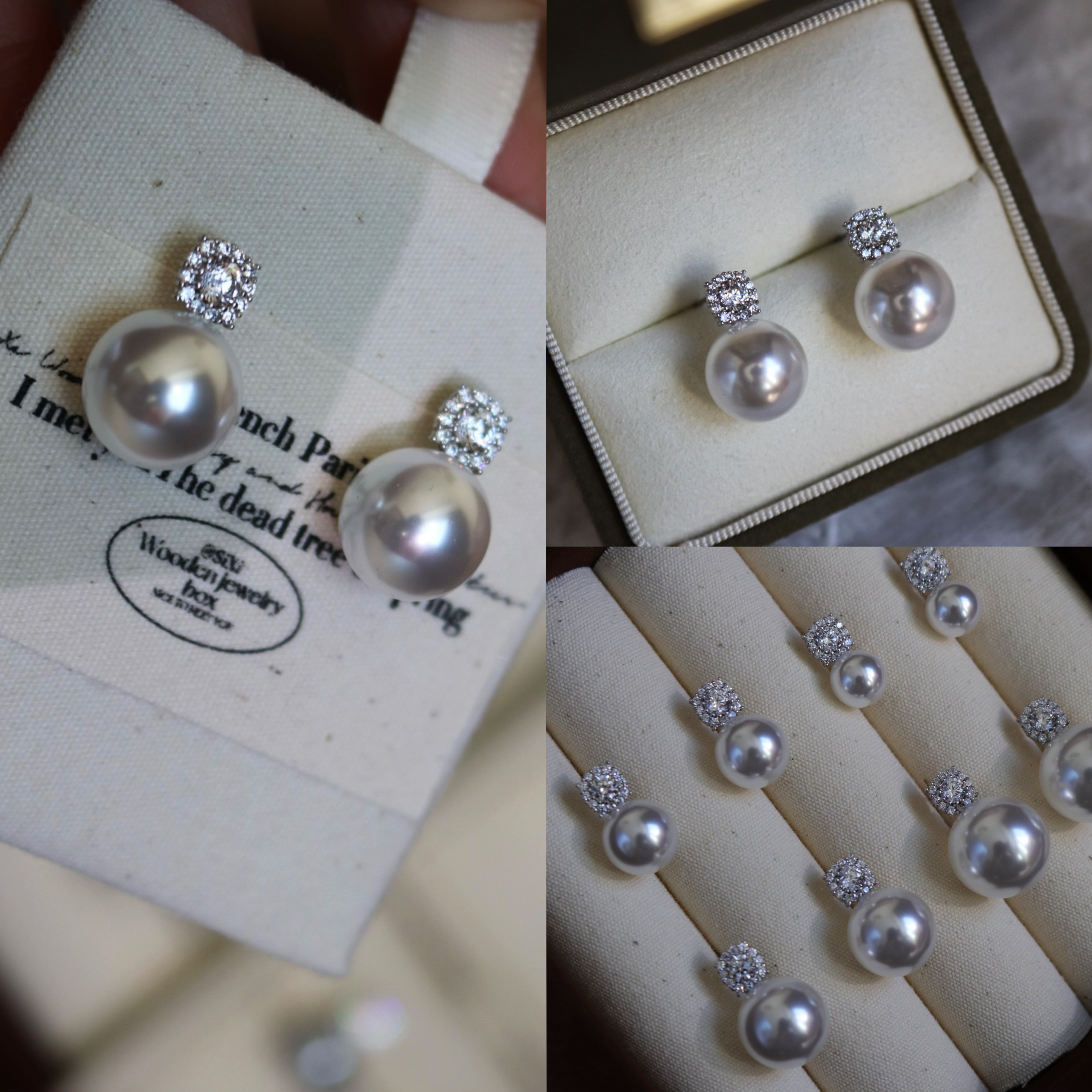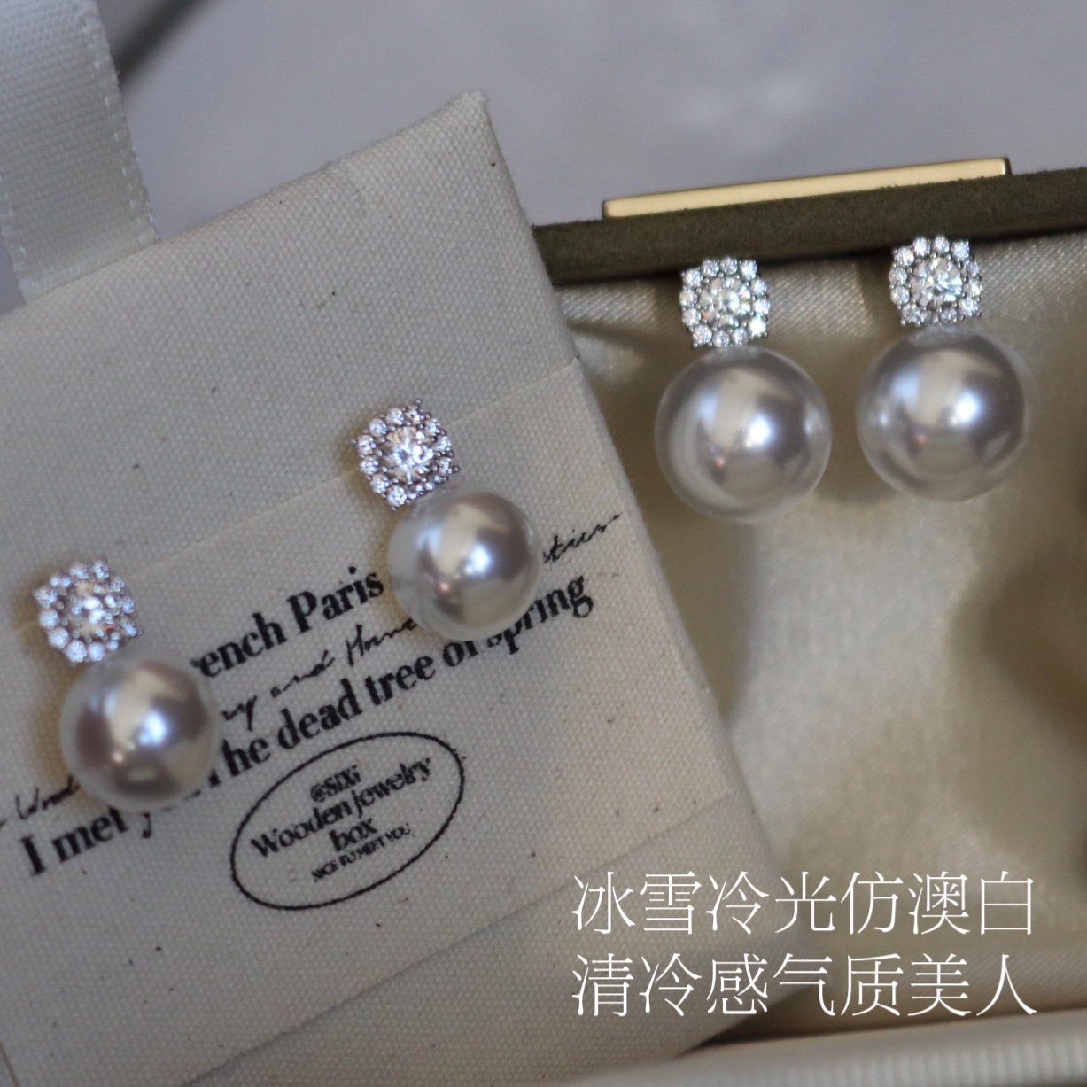 戴妃款正圆强光法式冷白极光人造澳白珍珠耳环925纯银耳钉高级感