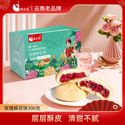 云南特产傣乡园经典玫瑰鲜花饼30g*10枚伴手礼盒糕点心早餐下午茶