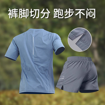 跑步男运动套装夏冰丝速干t恤短裤训练服新款羽毛球短袖健身休闲