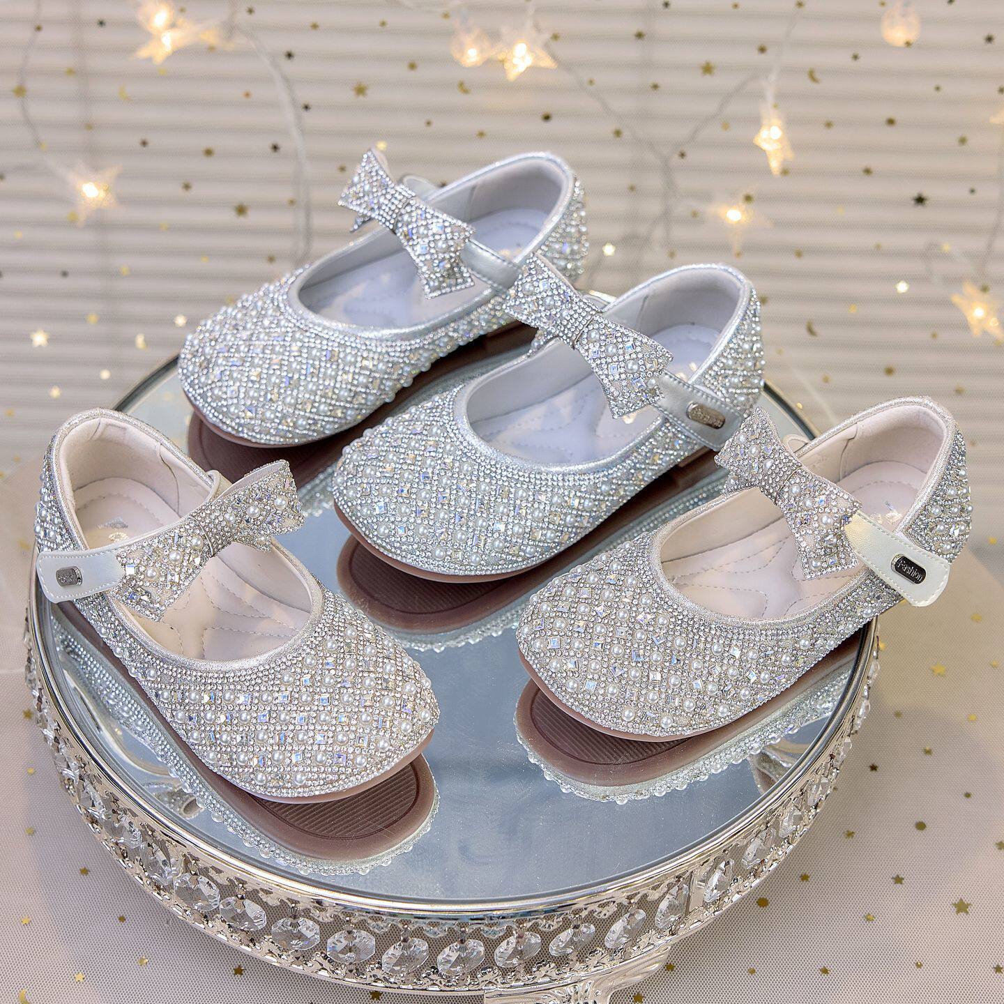 真皮女童公主鞋2025春秋新款皮鞋儿童水晶鞋女孩水钻闪亮鞋单鞋软