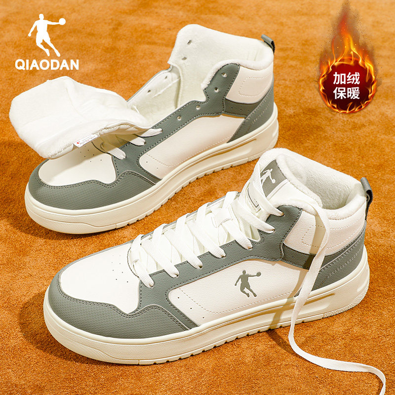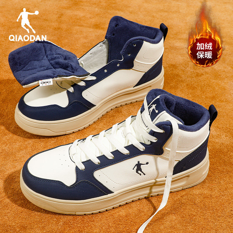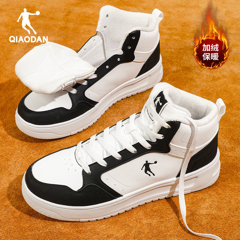乔丹皮面高帮板鞋加绒保暖二棉鞋男款2025冬季新款厚底休闲运动鞋