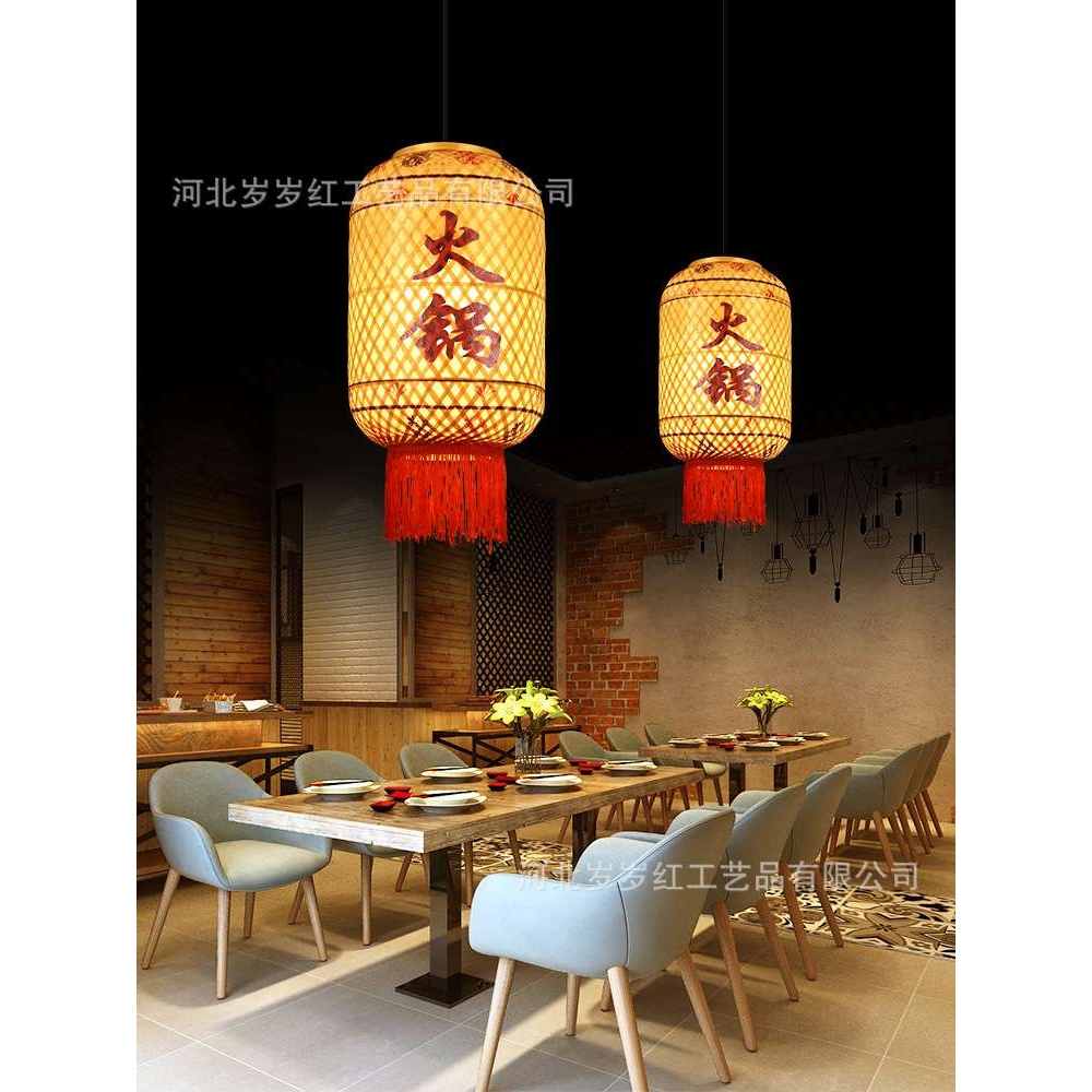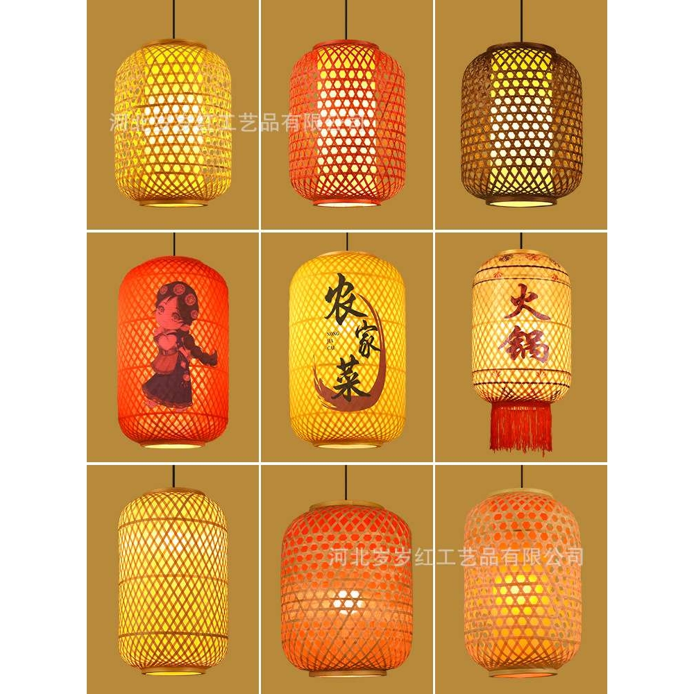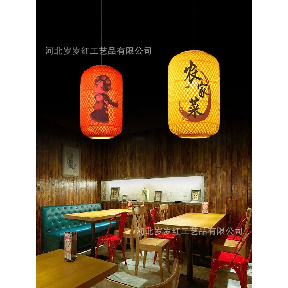 中式油纸竹编灯笼古风餐厅酒店大排档火锅店广告印字吊灯烘火罩