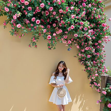 仿真玫瑰花藤网红背景墙打卡拍照假花民宿庭院阳台瀑布花墙装饰品