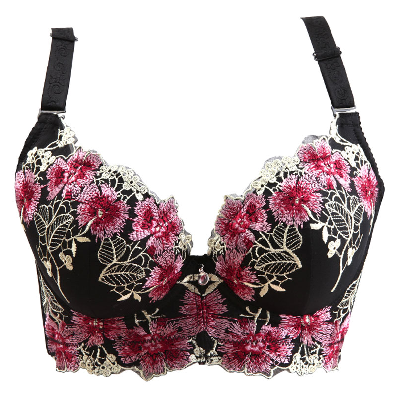 加厚聚拢有钢圈副乳大码刺绣文胸