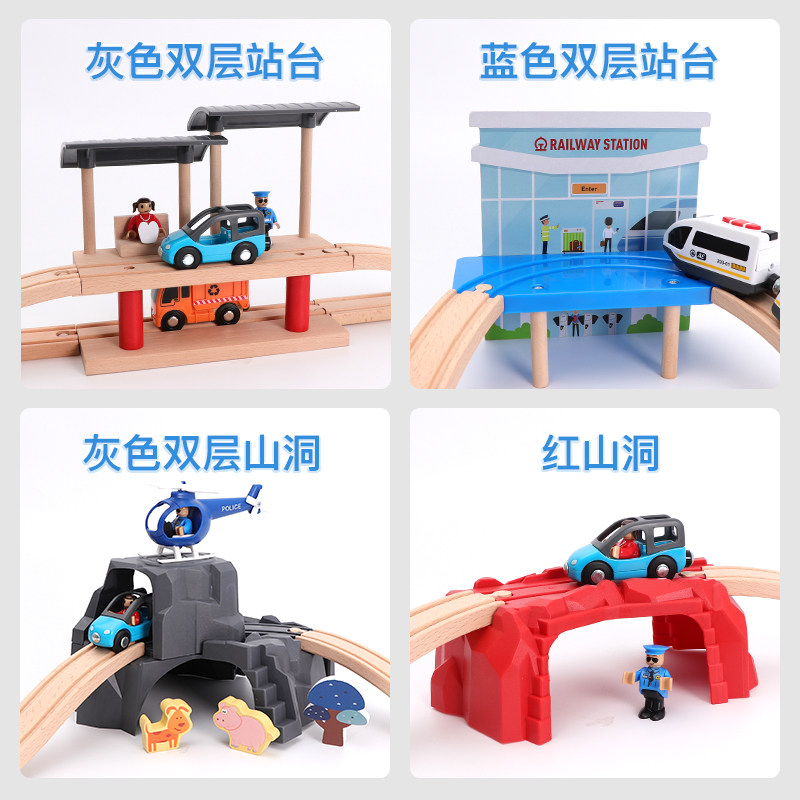 儿童火车轨道房子山洞停机坪仿真双层站台米兔brio火车轨道玩具