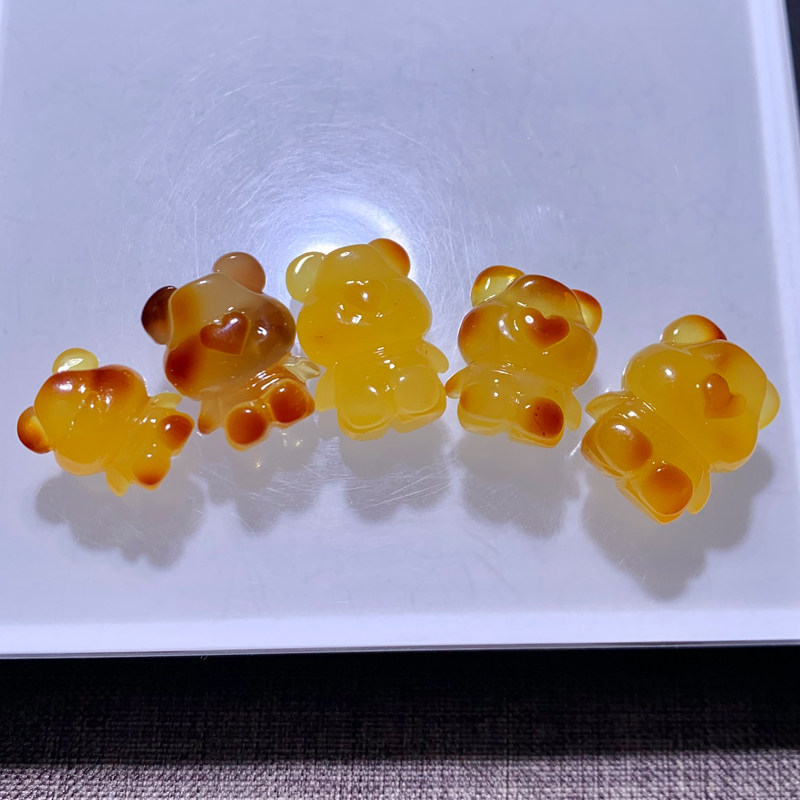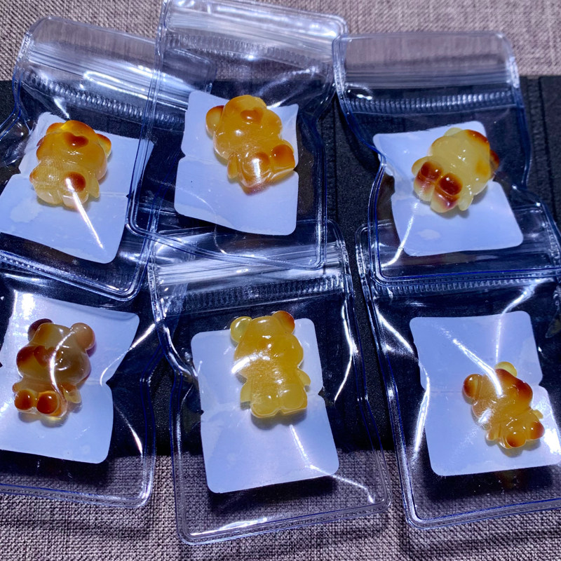 天然蜜蜡小熊雕刻件琥珀波罗的海原石原矿金珀手串手链黄色玉石女