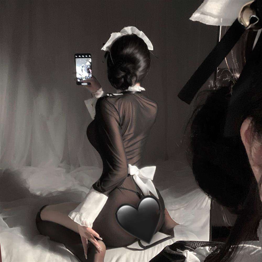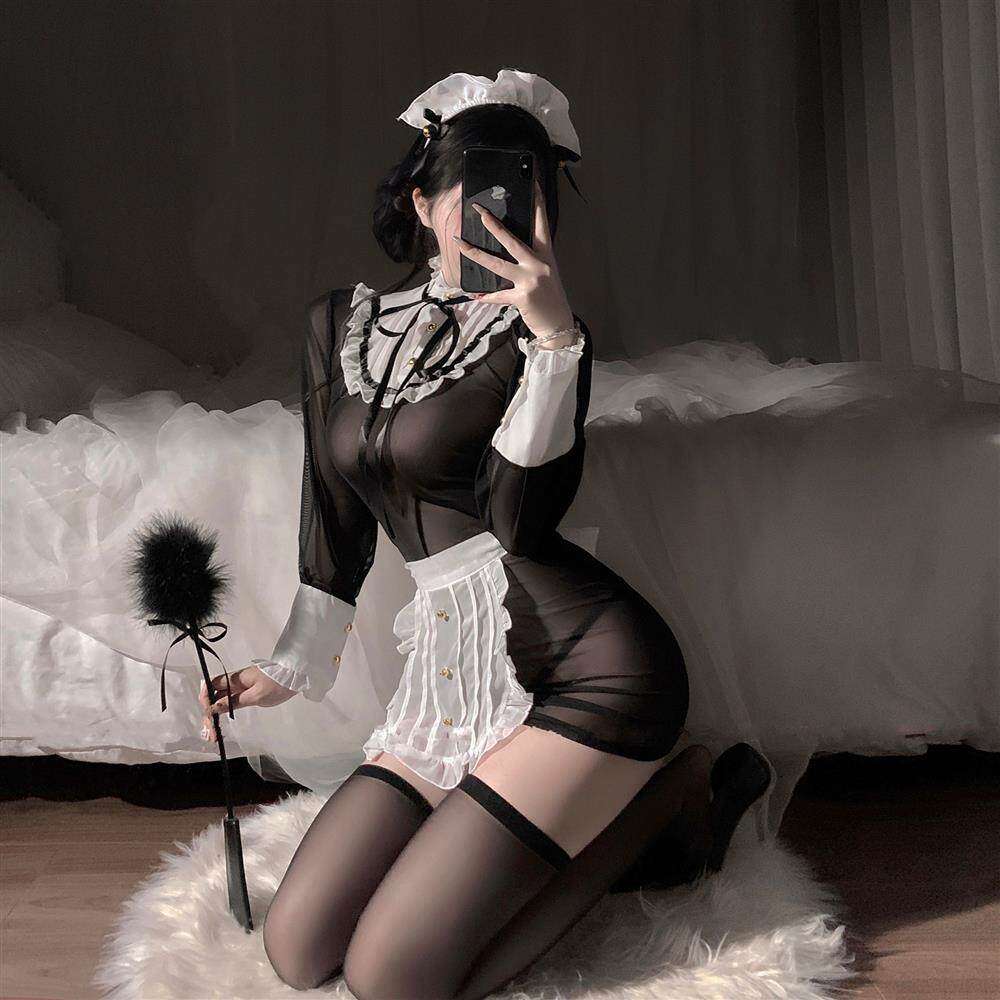 专属女仆*性感网纱透视包臀连衣裙女佣制服cos套装围兜紧身超短裙