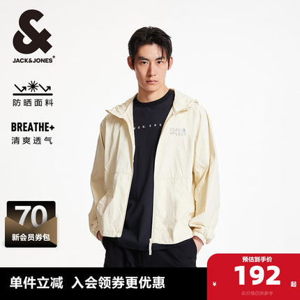 杰克琼斯夏季新款反光胶印清爽透气宽松连帽防晒服夹克外套男装
