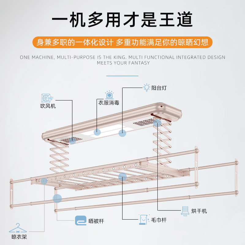 名族好太太全自动升降杆阳台电动语音家用烘干壁控双排智能晾衣架