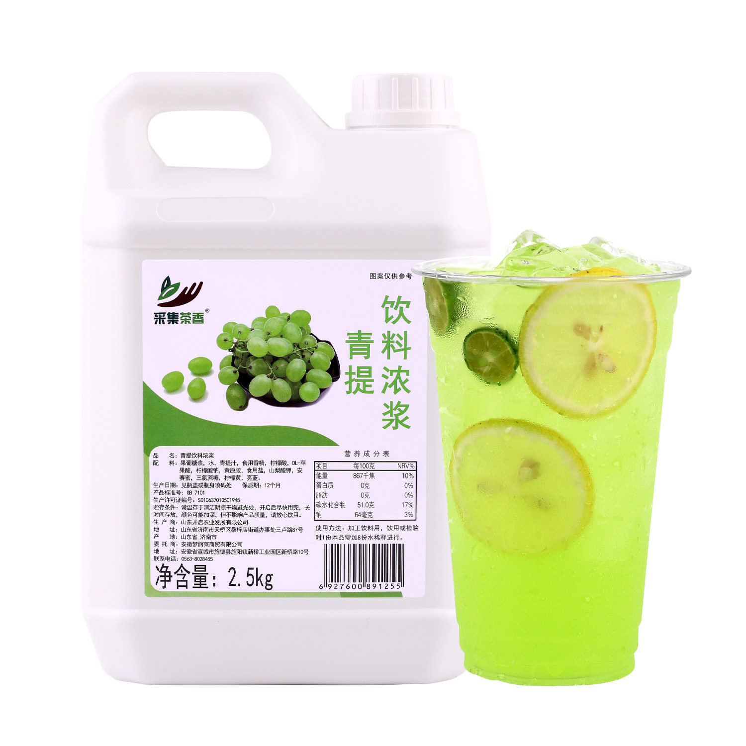 2.5kg青提浓缩果汁 夏季青葡萄饮商用多口味连锁餐饮奶茶专用原料