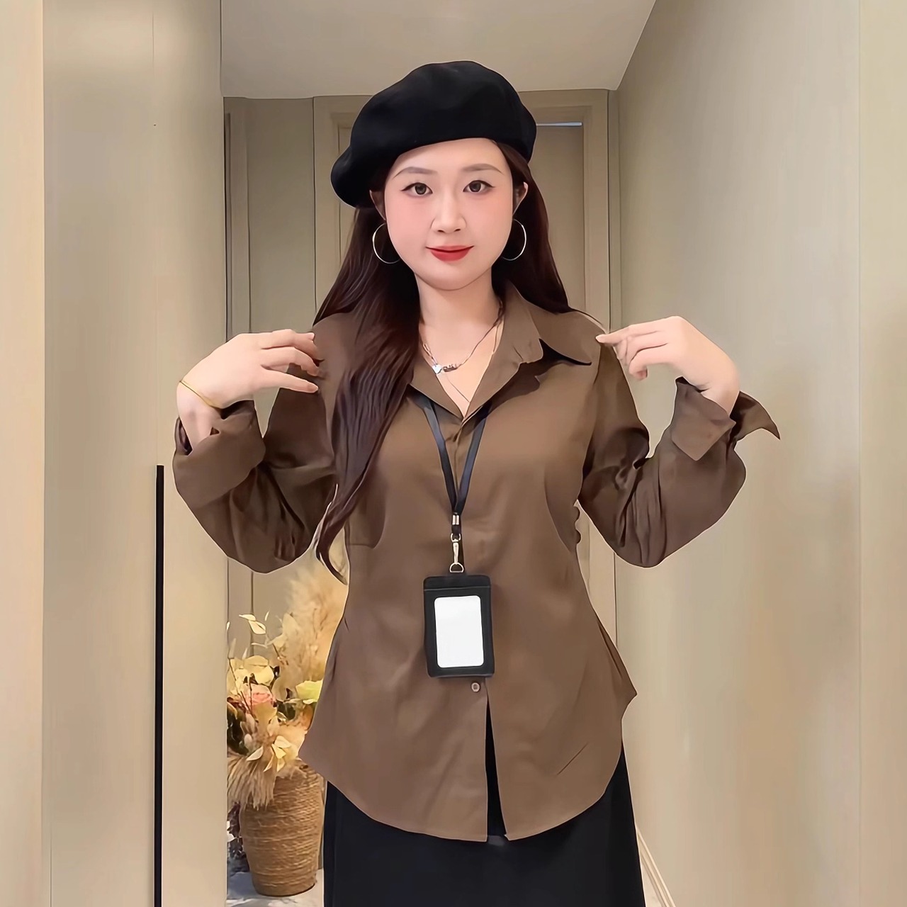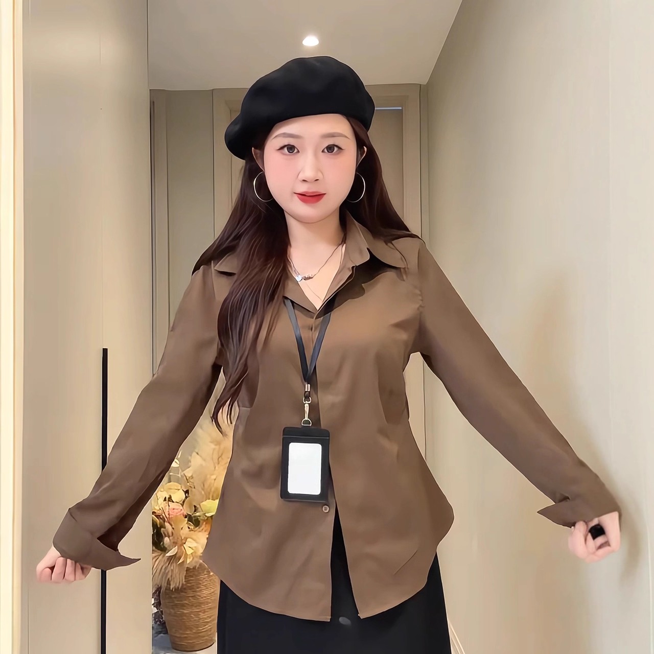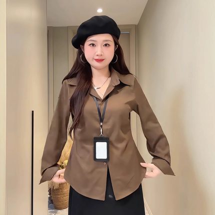 复古气质长袖衬衫女收腰显瘦上衣