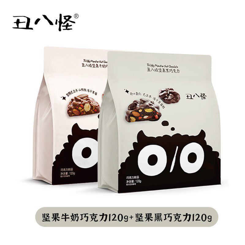 金丝猴丑八怪坚果黑巧克力纯可可脂0反式脂肪酸精选果干丝滑浓郁