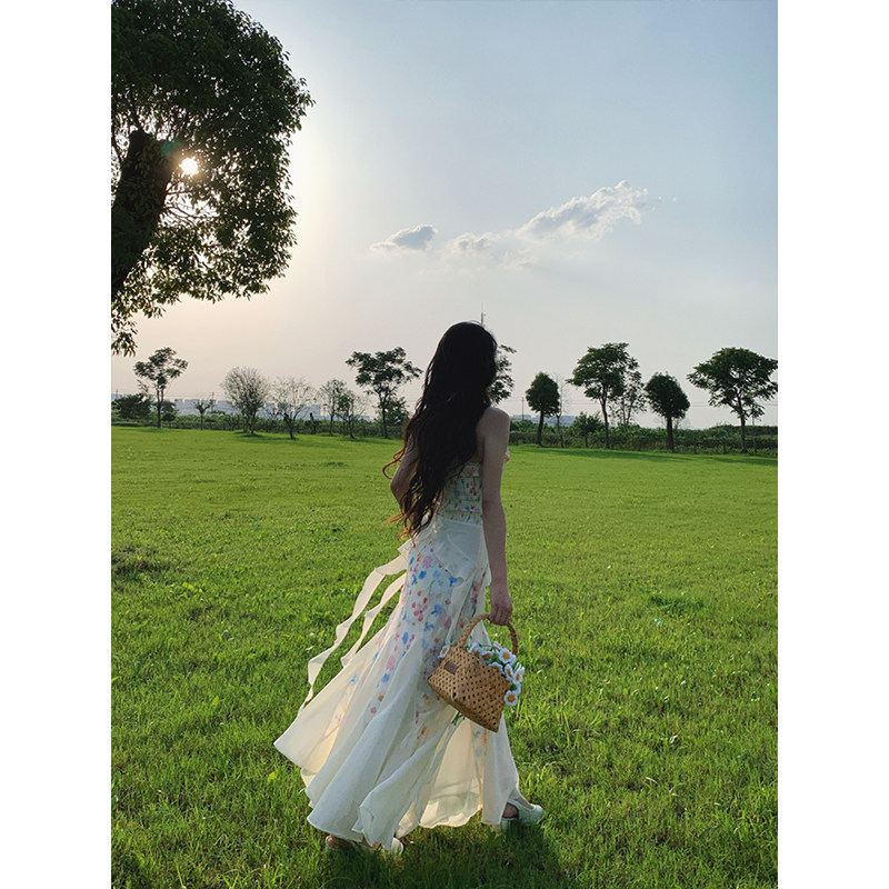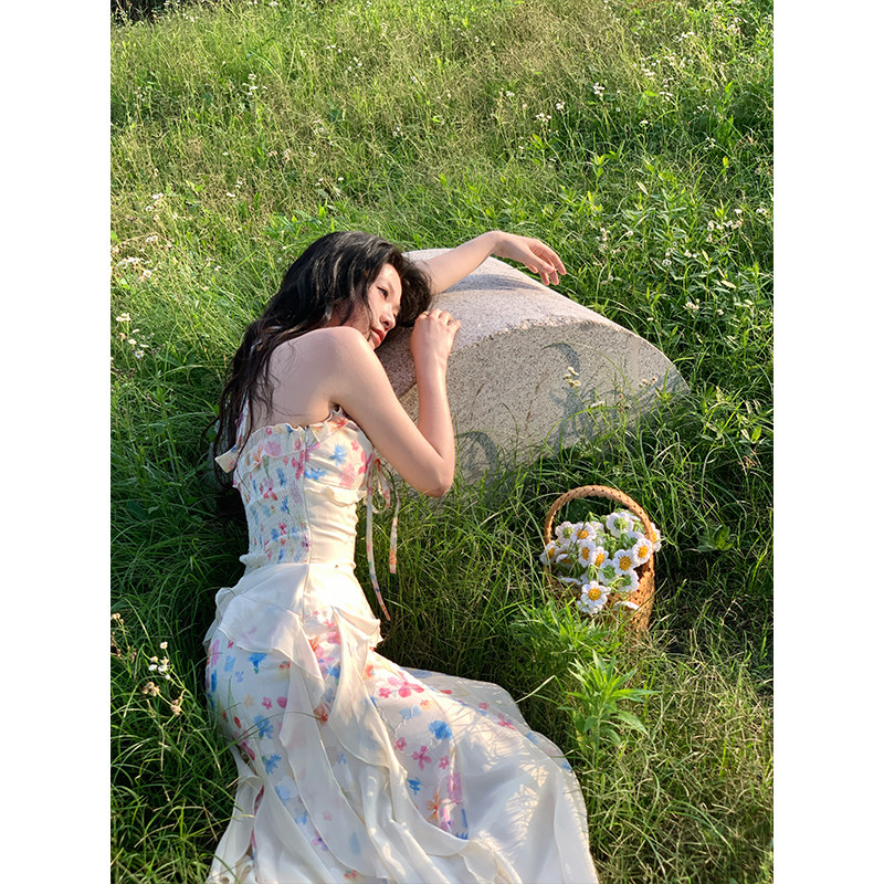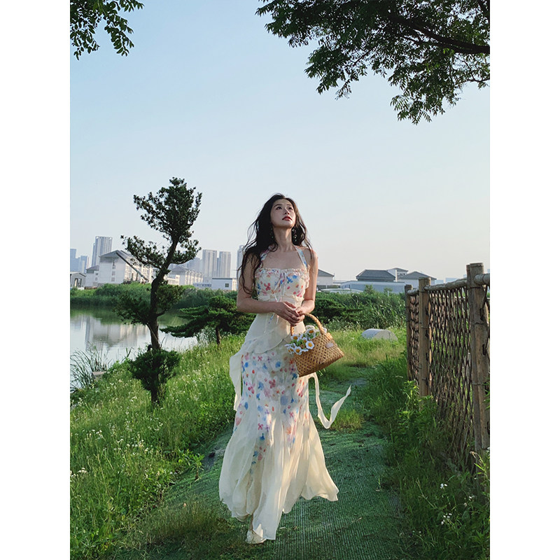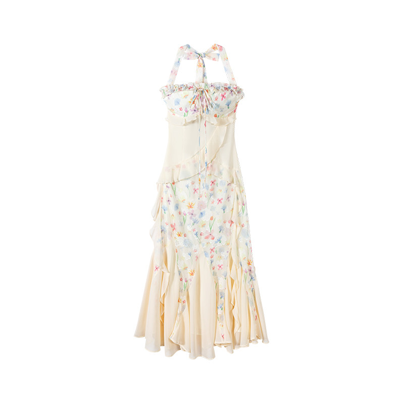 六指导 盛夏花季 浪漫荷叶边拼接挂脖连衣裙女气质显瘦减龄仙女裙