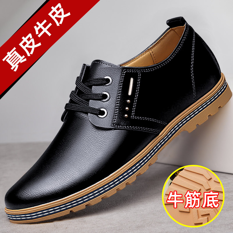 男士皮鞋男款休闲鞋真皮男鞋2026新款春季内增高牛皮透气工作鞋子