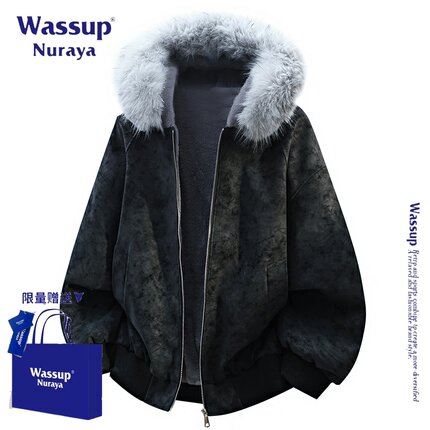 WASSUP NURAYA可拆卸大毛领连帽皮衣男女冬季加厚保暖座山雕外套