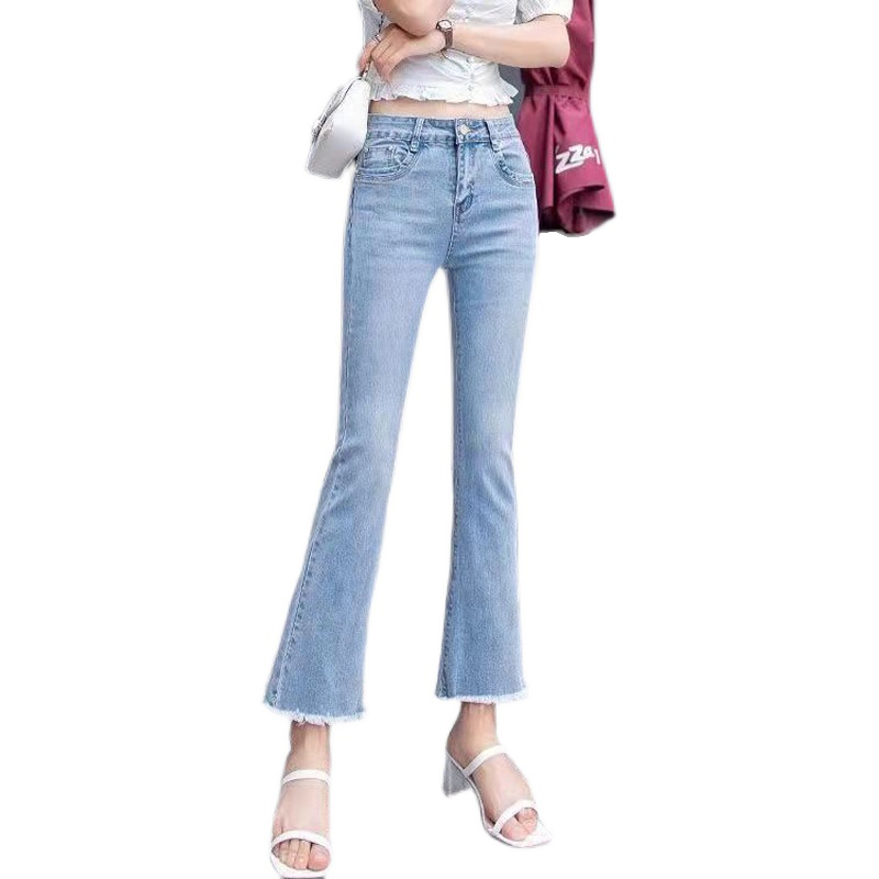高腰显瘦毛边微喇牛仔裤春秋款
