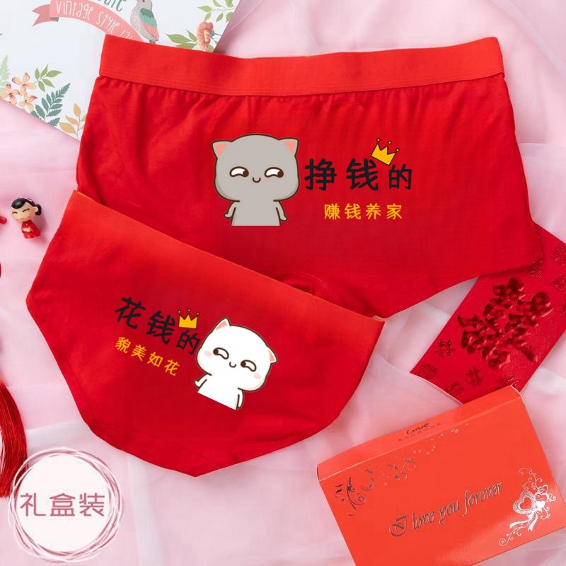 结婚红色内裤情侣套装一对纯棉质新婚本命年大红内衣内裤女男夫妻