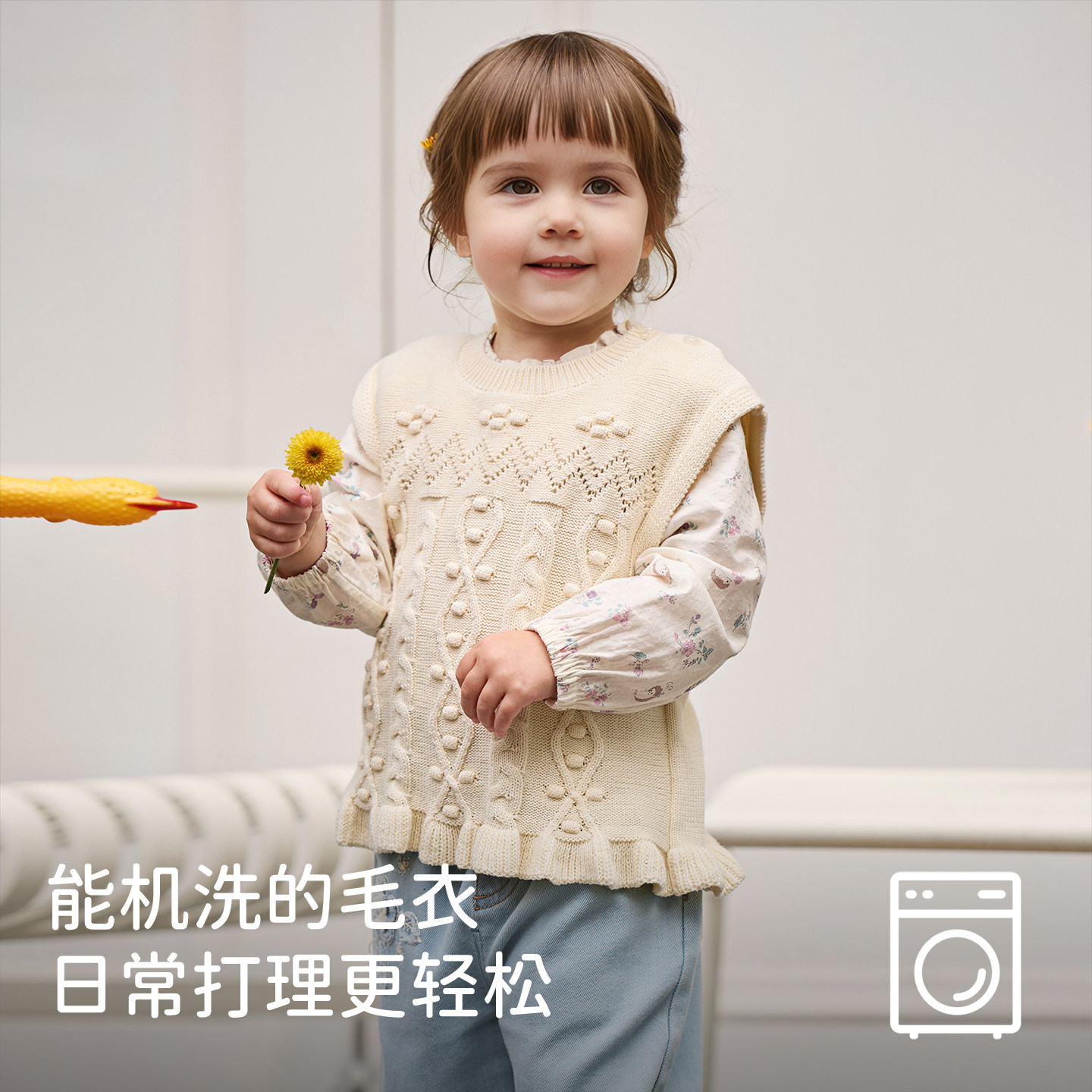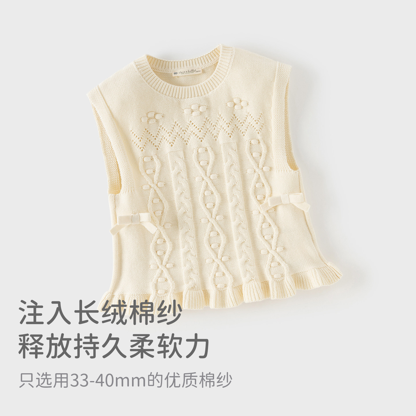 戴维贝拉儿童抗静电毛衣背心2026春装新款纯棉女童坎肩针织马甲