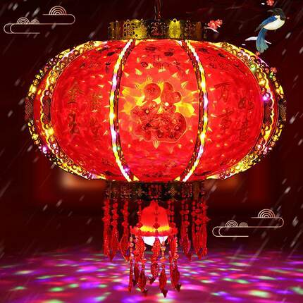 新年2025灯笼旋转大门口一对新款春节七彩福字走马灯阳台结婚乔迁