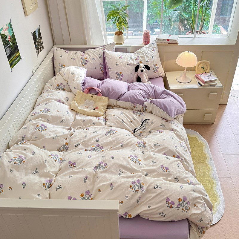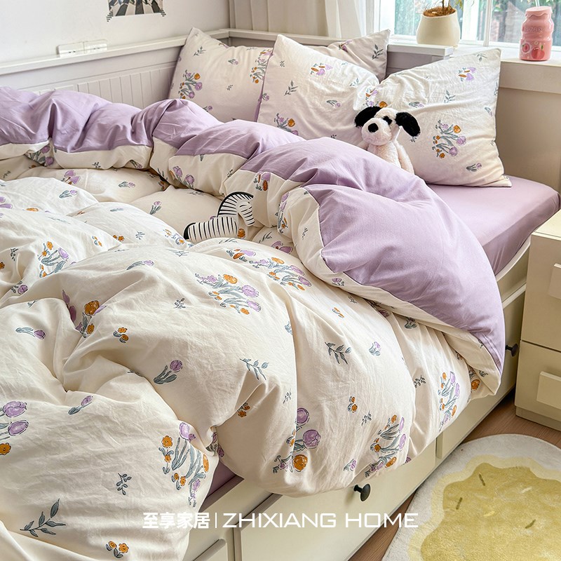 床上四件套纯棉全棉床笠款小碎花水洗棉被套床单人宿舍学生三件套