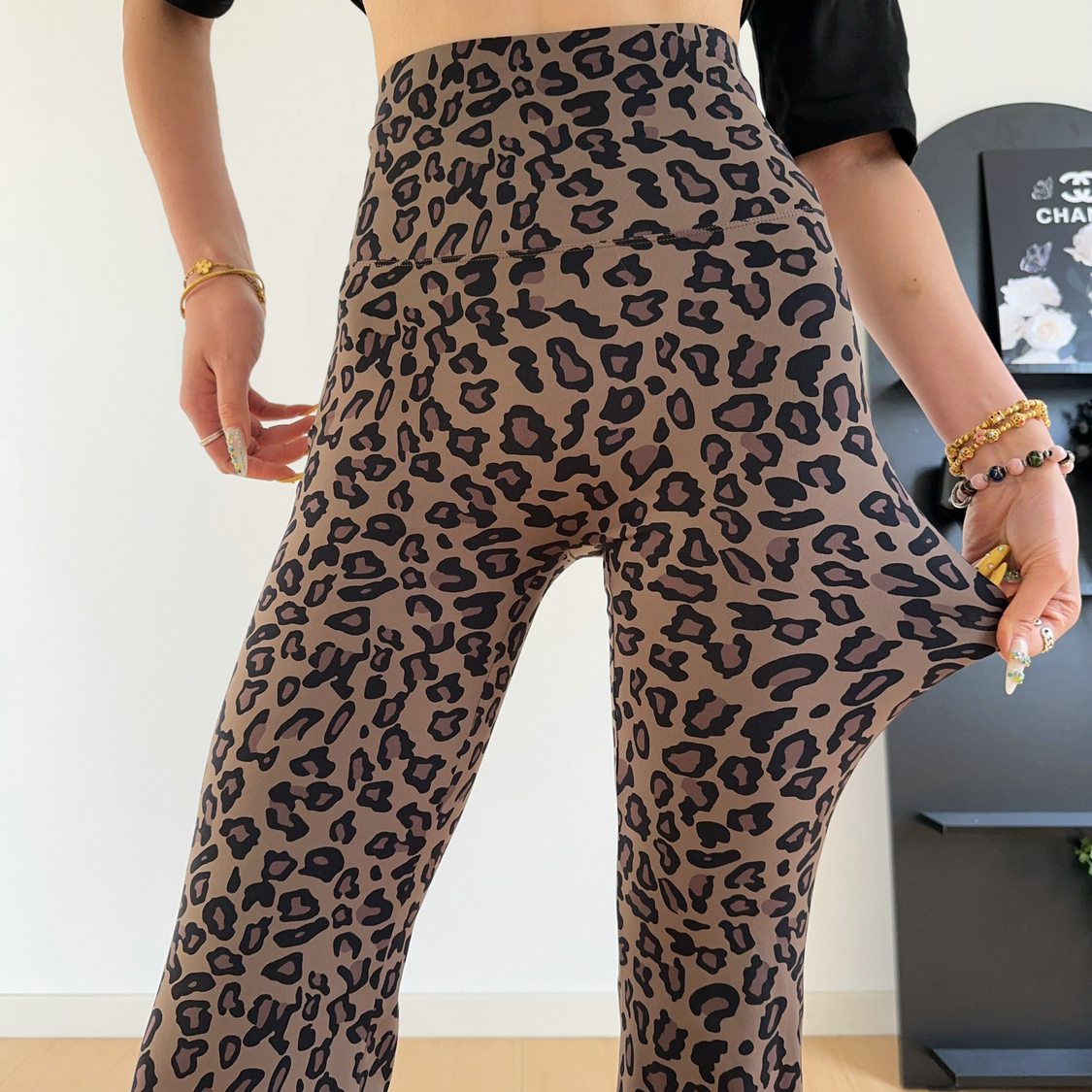 猫猫家加长女裤秋冬瑜伽裤显瘦一绝定制豹纹印花微喇超模腿神裤潮