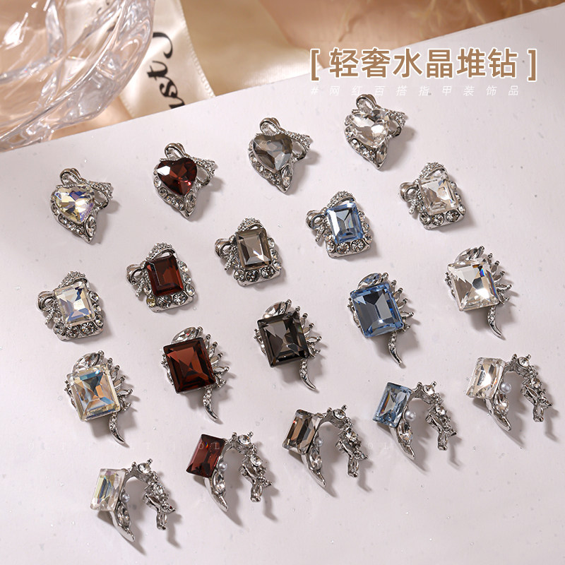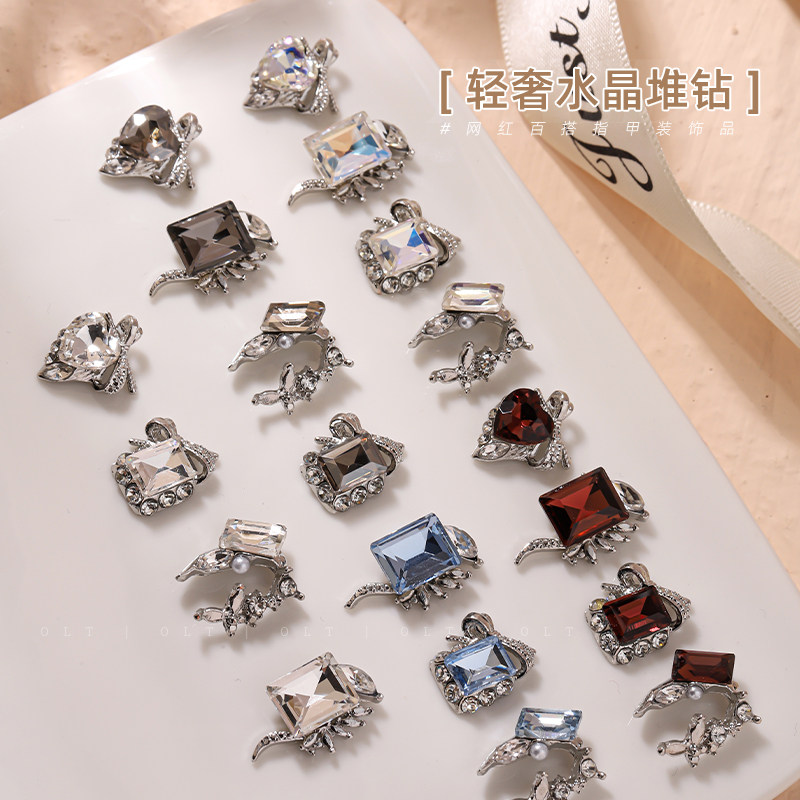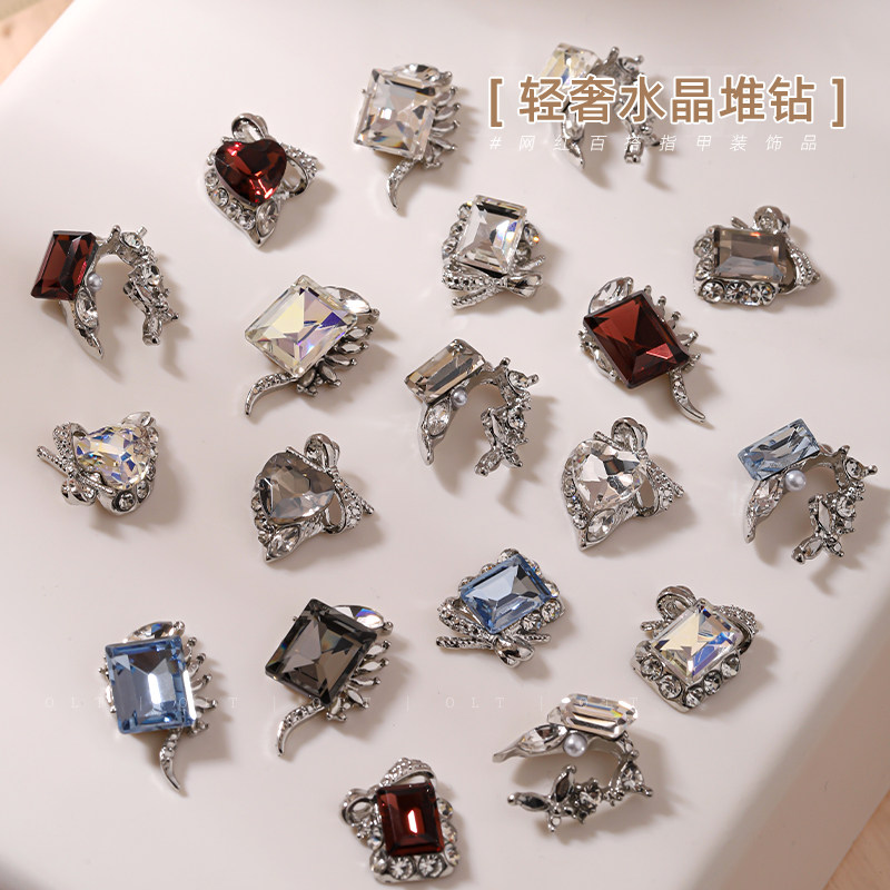 onlyting美甲轻奢水晶堆钻爆闪锆石堆钻成品网红同款指甲超闪装饰