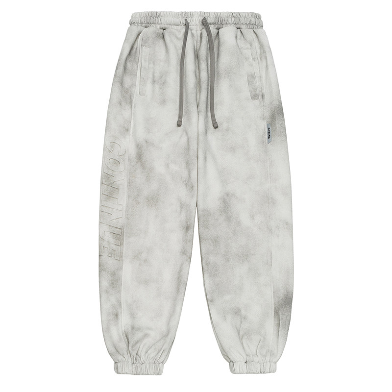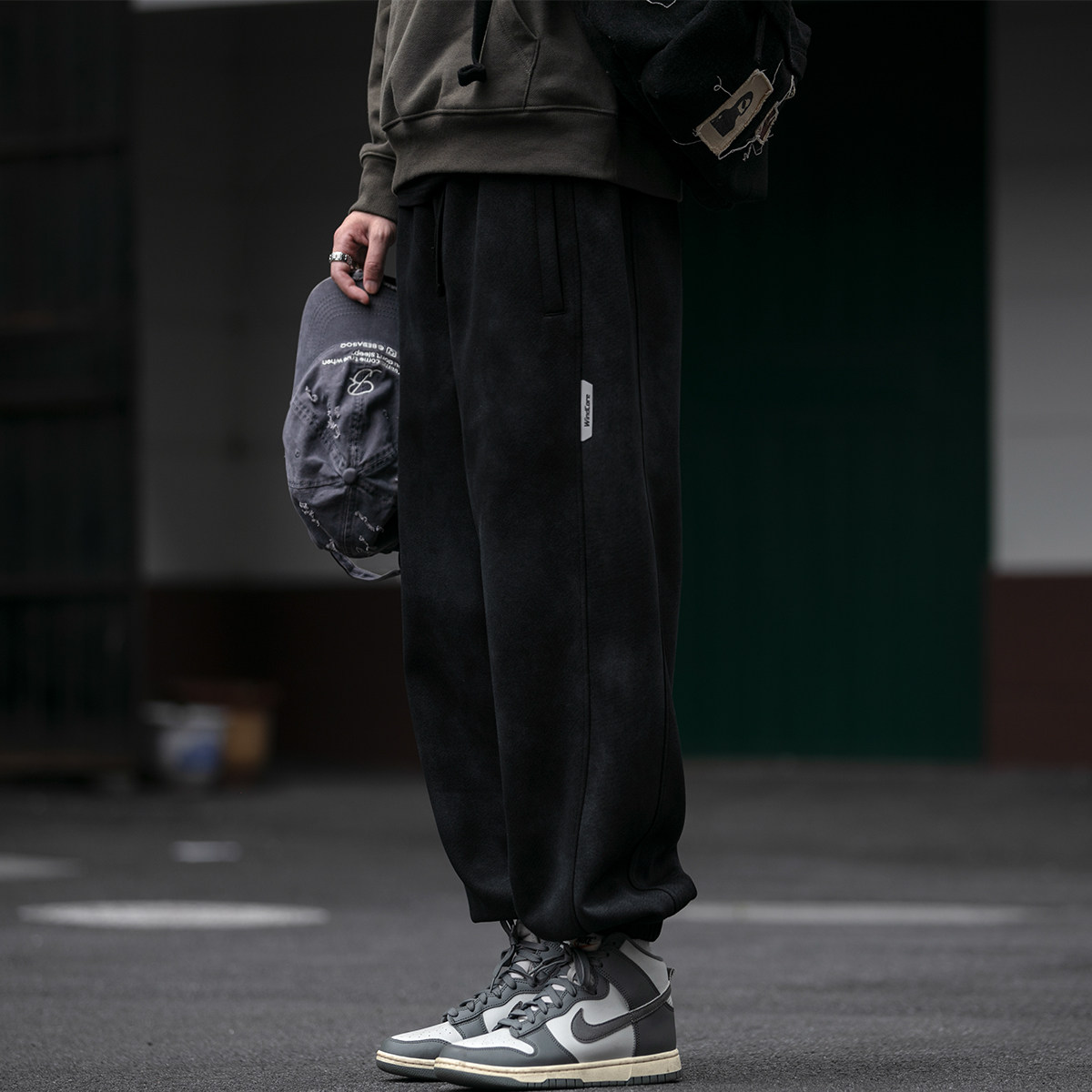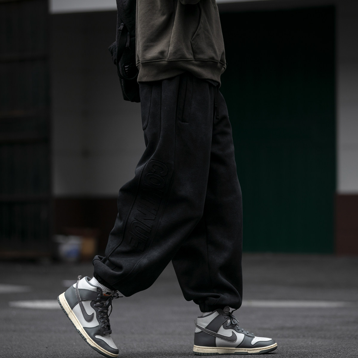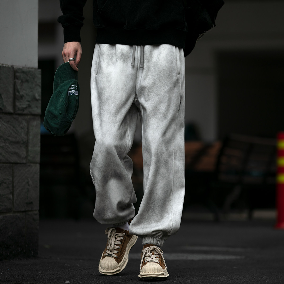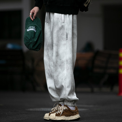 秋冬季质感字母钢印卫裤男潮牌宽松大码脏喷运动裤潮流百搭束脚裤
