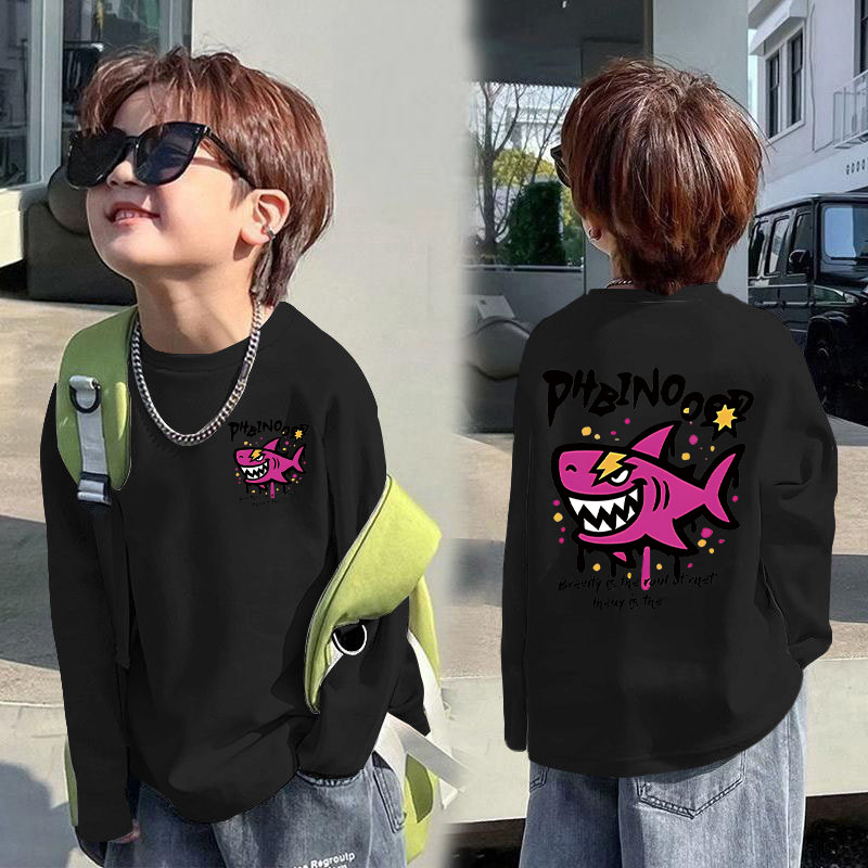 儿童春秋装纯棉长袖T恤帅气男童宽松上衣中大童春秋款百搭打底衫