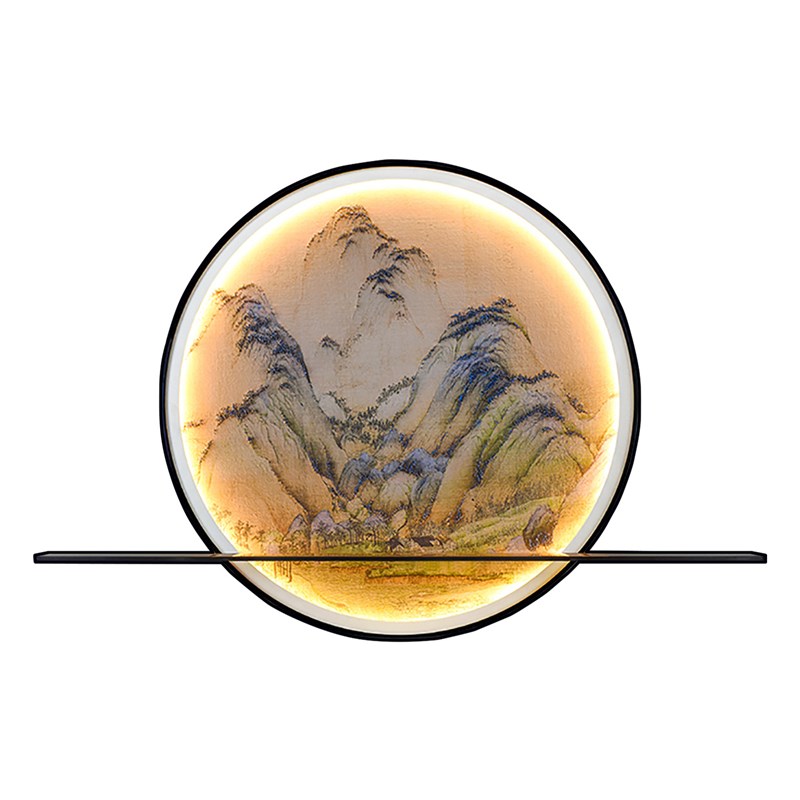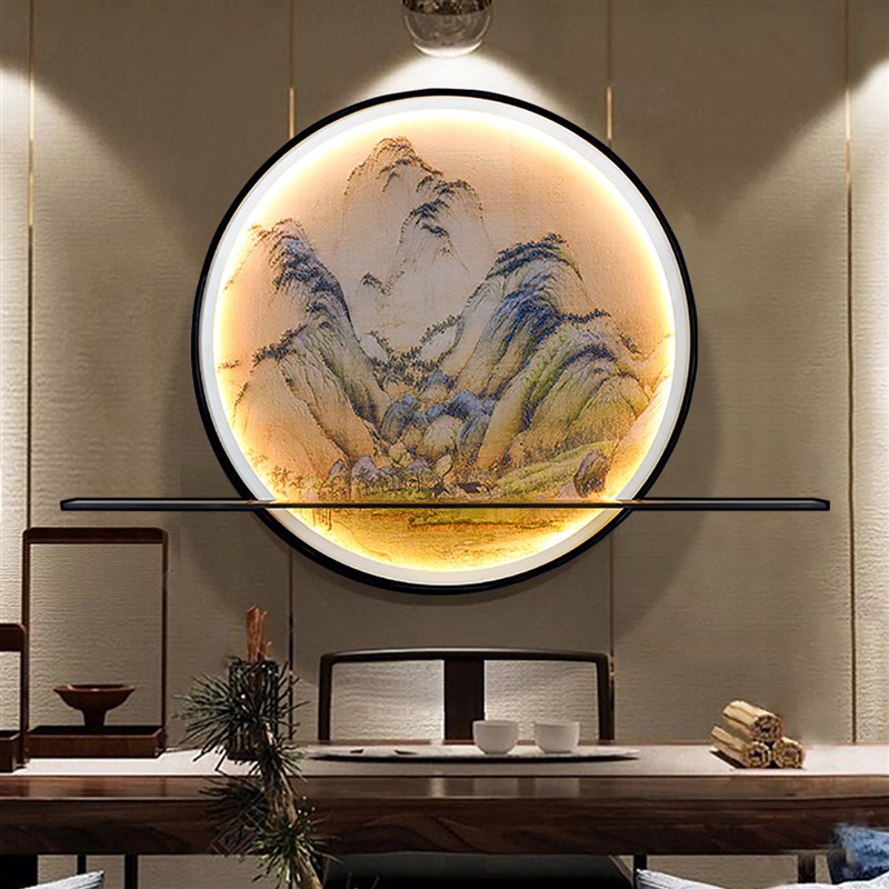 灯光画新中式圆形电表箱壁灯玄关挂画茶室禅意挂件置物架装饰画