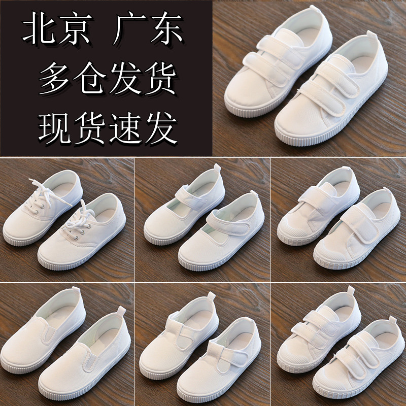 儿童小白鞋男童白布鞋女帆布鞋小学生白色球鞋幼儿园学校六一演出