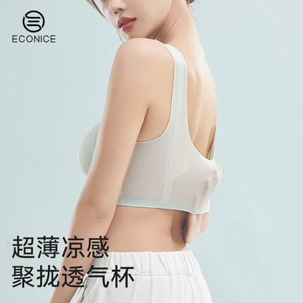 无痕背心式文胸女夏天超薄款U型美背无钢圈小胸聚拢胸罩冰丝内衣