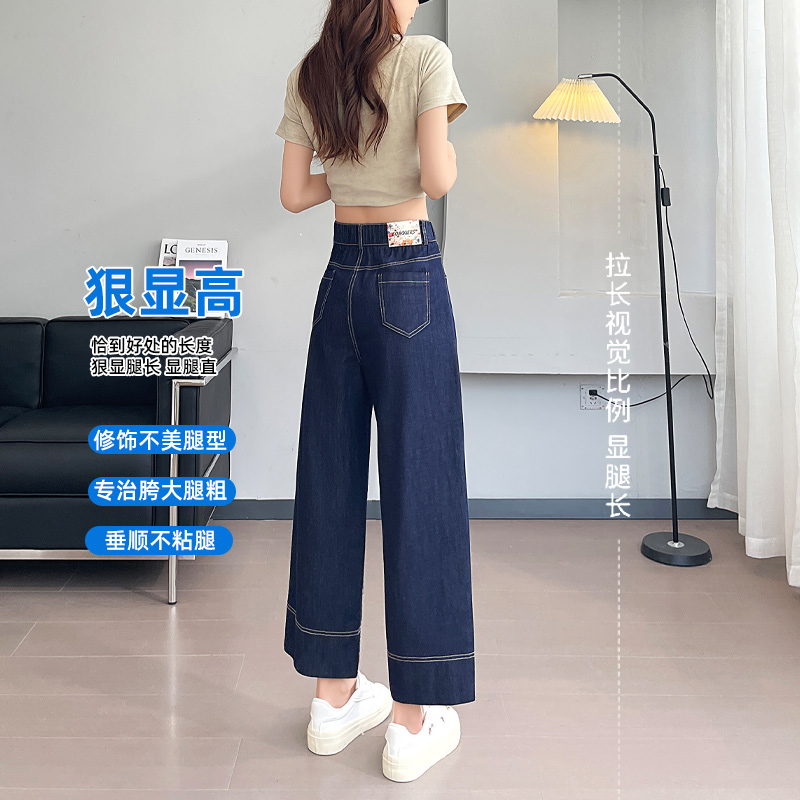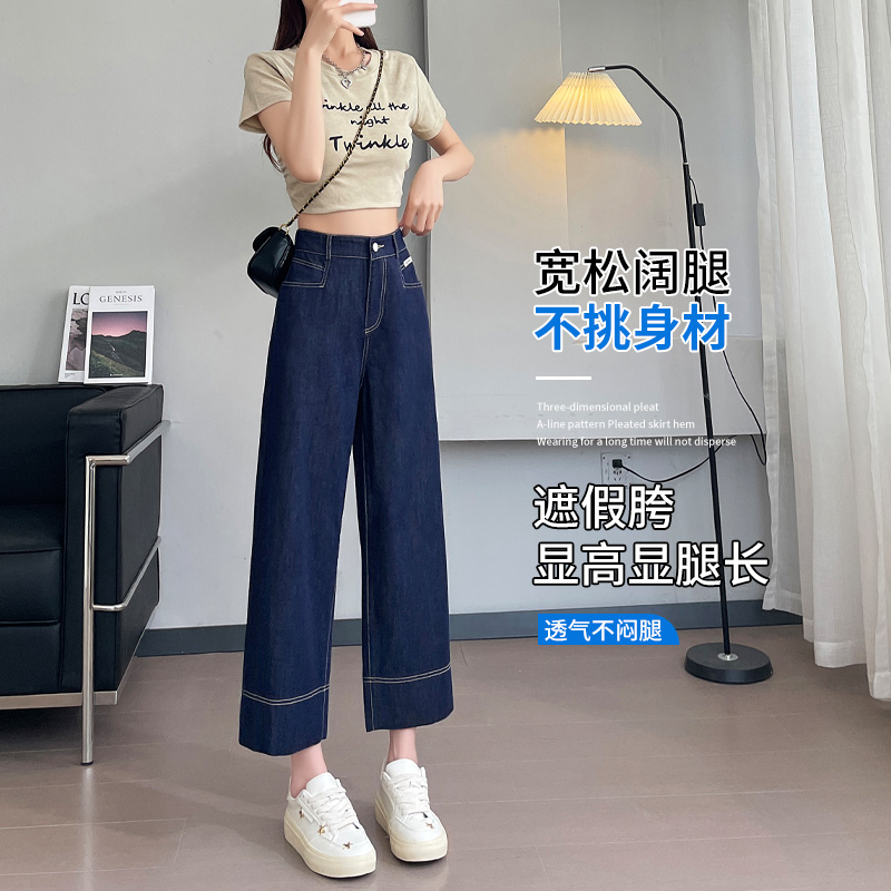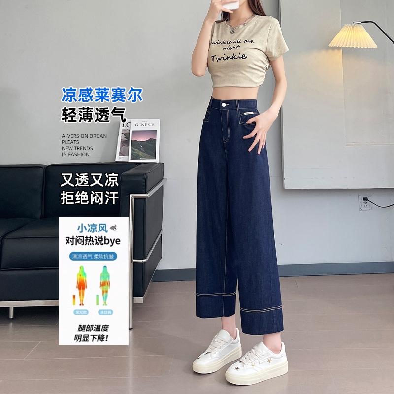 天丝九分阔腿牛仔裤女2024夏季薄款蓝色高腰显瘦宽松小个子直筒裤