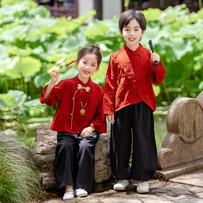 儿童秋冬汉服红色表演服亲子装古风唐装国风男女童生日新中式套装