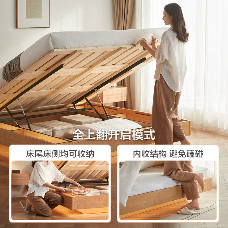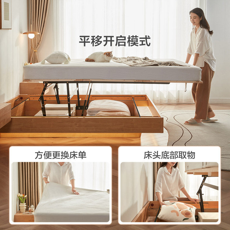 林氏北欧高箱床无床头悬浮原木风储物收纳床1.8m双人主卧家用床