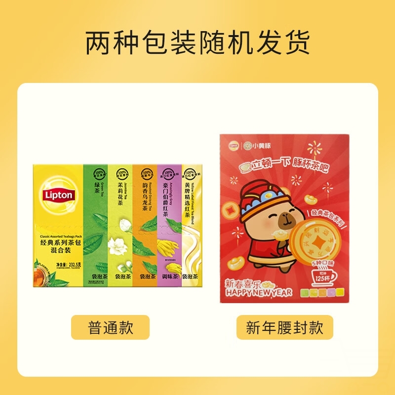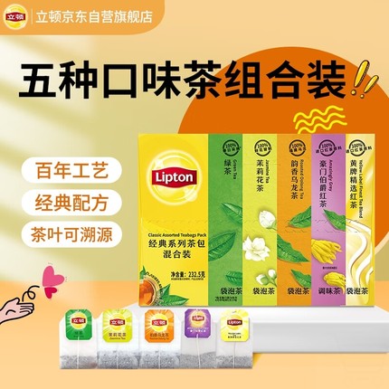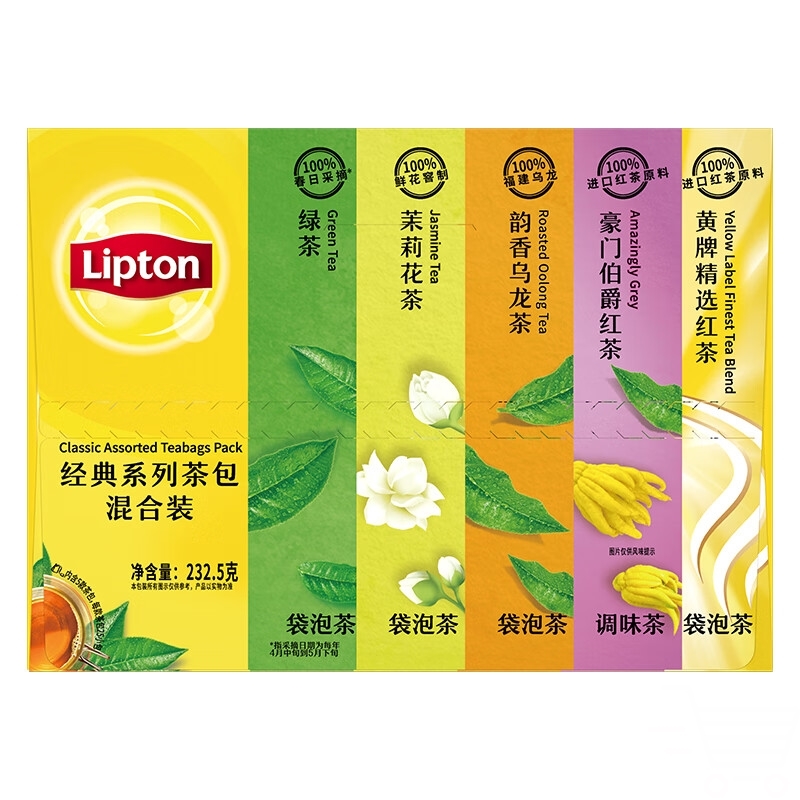 立顿Lipton经典绿茶茉莉乌龙伯爵红茶5种混合口味共125包232.5g