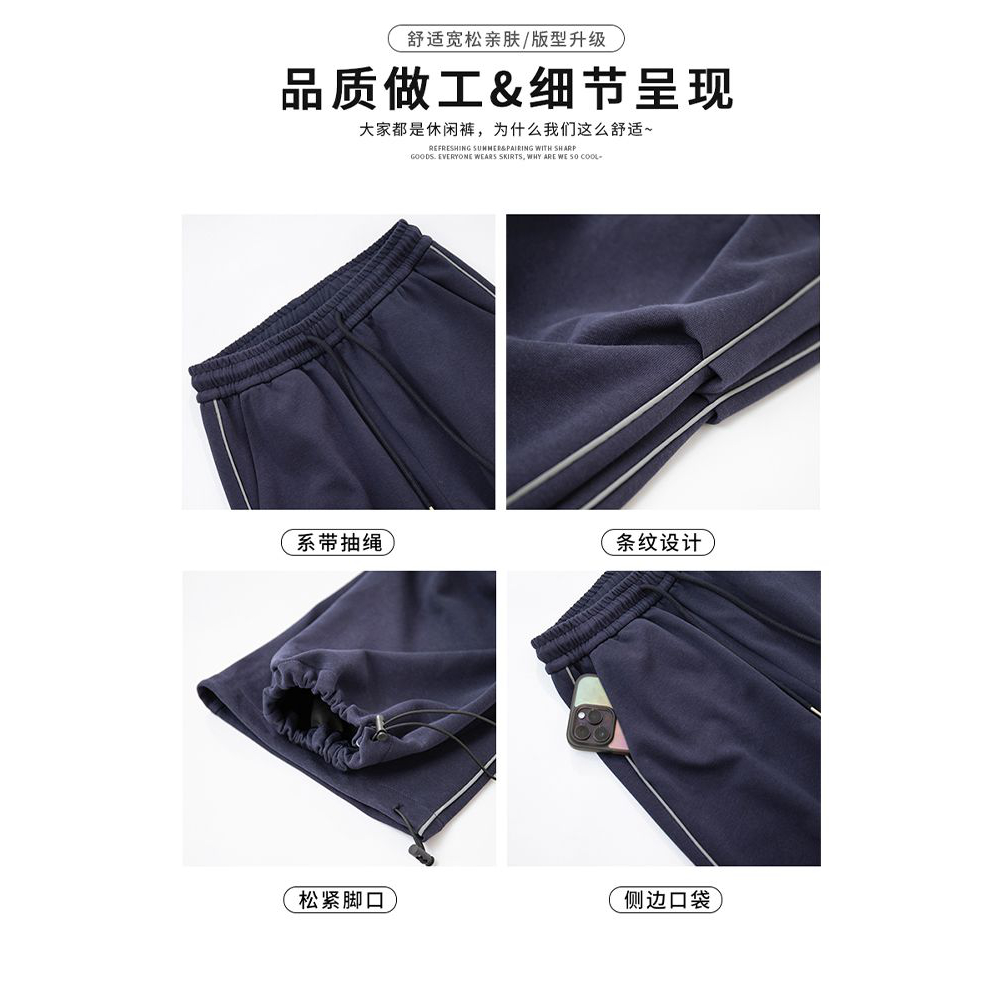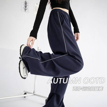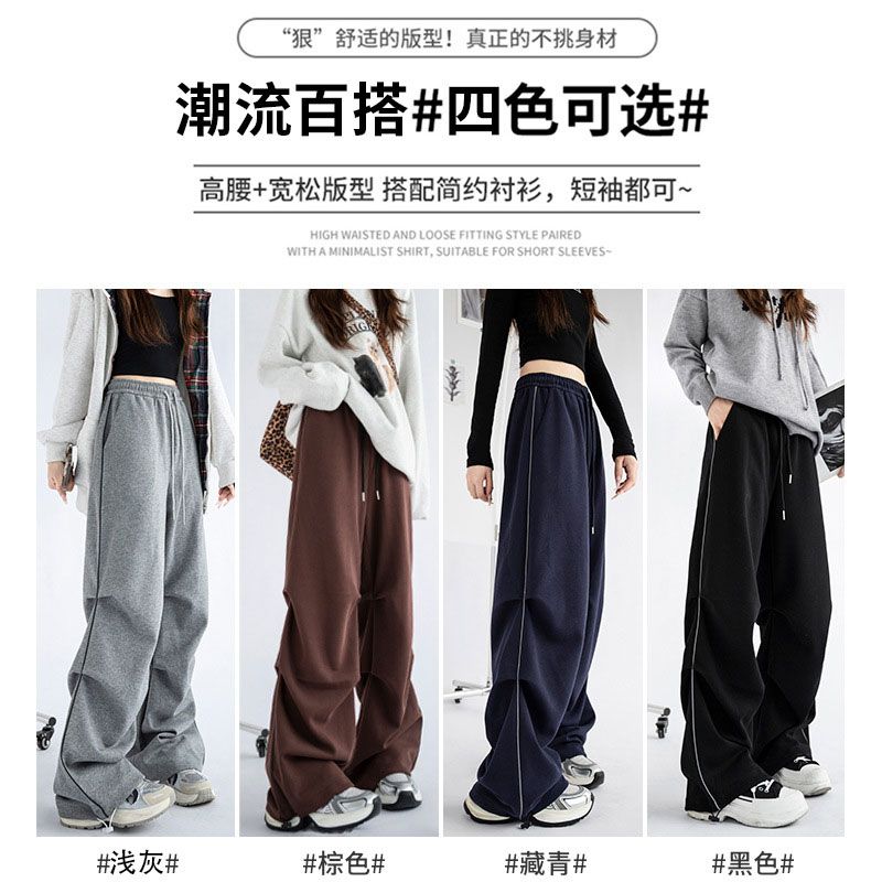 爵士休闲运动裤卫裤女春季新款侧条纹慵懒阔腿宽松遛弯裤拖地长裤