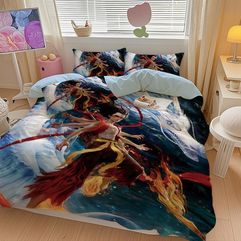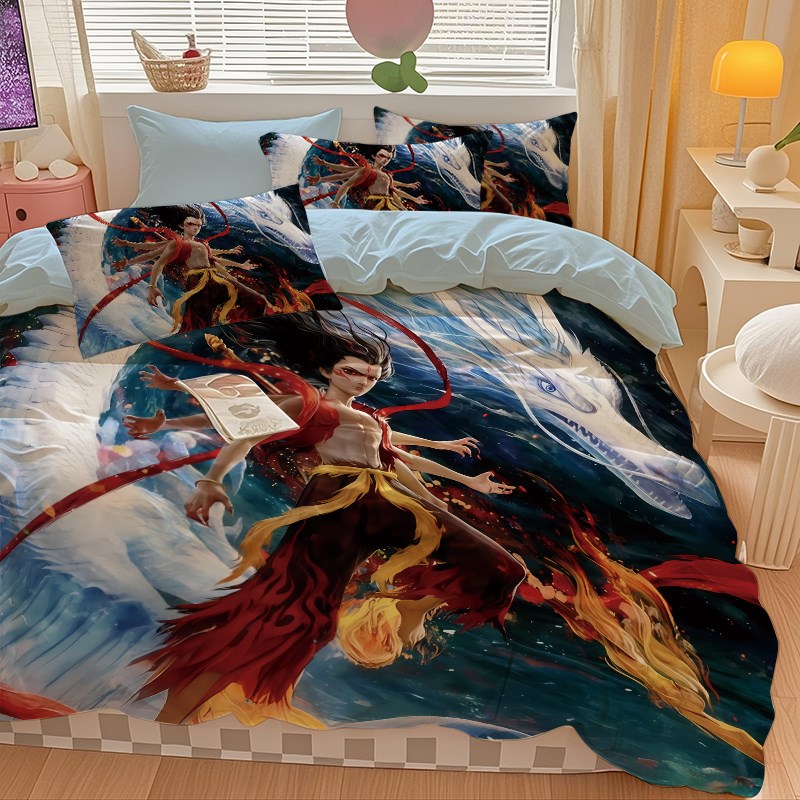 儿童卡通哪吒电影全棉床单四件套1.5m床学生单人被套三件套