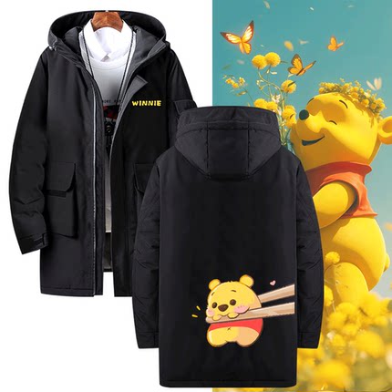 小熊维尼夹团子皮杰猪跳跳虎ec萌系男女定制中长款外套休闲羽绒服