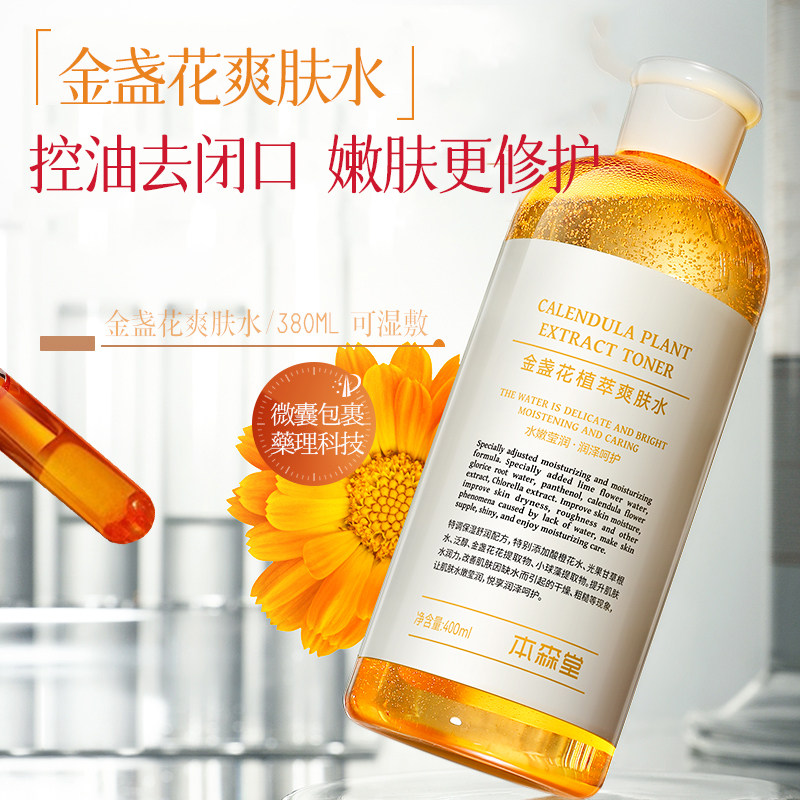 金盏花爽肤水湿敷水精华补水保湿去闭口女收缩毛孔清爽控油护肤品